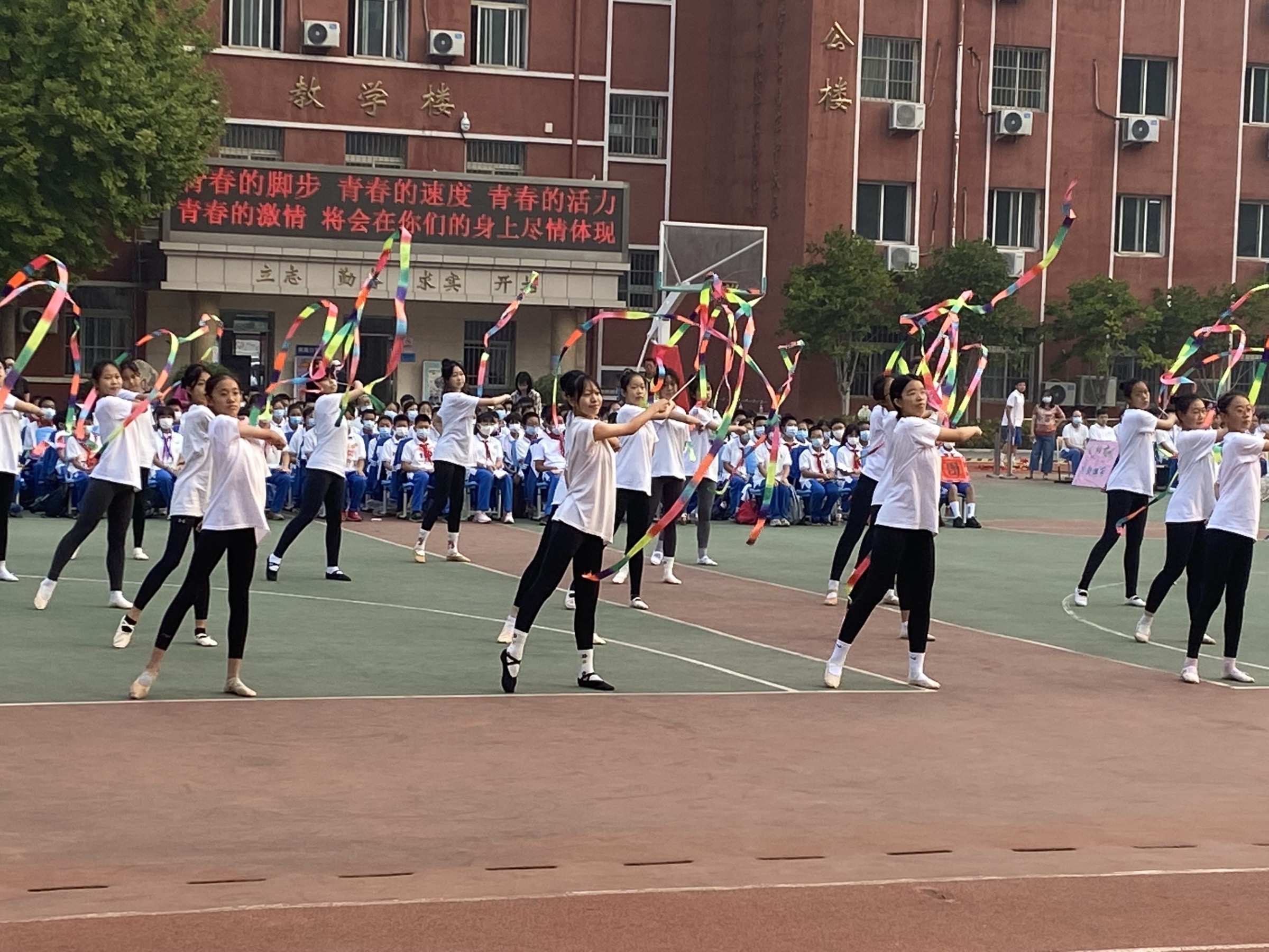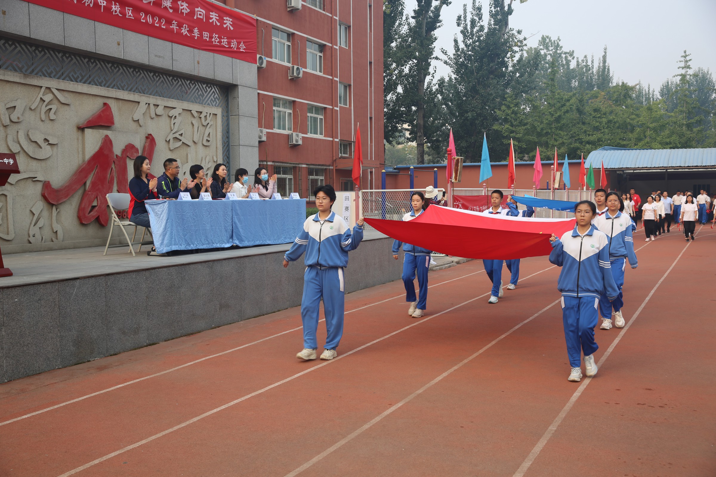 时维九月,硕果盈枝。2022年9月30日,我校区秋季运动会在暖场舞蹈中拉开帷幕。国旗方队和校旗方队分别由初三、初二年级的运动员代表担任。他们擎着旗帜,昂首挺胸,迈着自信的步伐,通过主席台。裁判员方阵手举国旗,用自信的微笑展示出他们对本次运动会公平、公正、公开裁决的信心。随后初三、初二和初一年级方阵,在各年级火炬手的带领下,依次通过主席台。他们特色的展示、嘹亮的口号彰显了青春的风采,昂扬的斗志。最后,邹校长将火炬放入本届运动会主背景墙,预示着运动会顺利开幕。