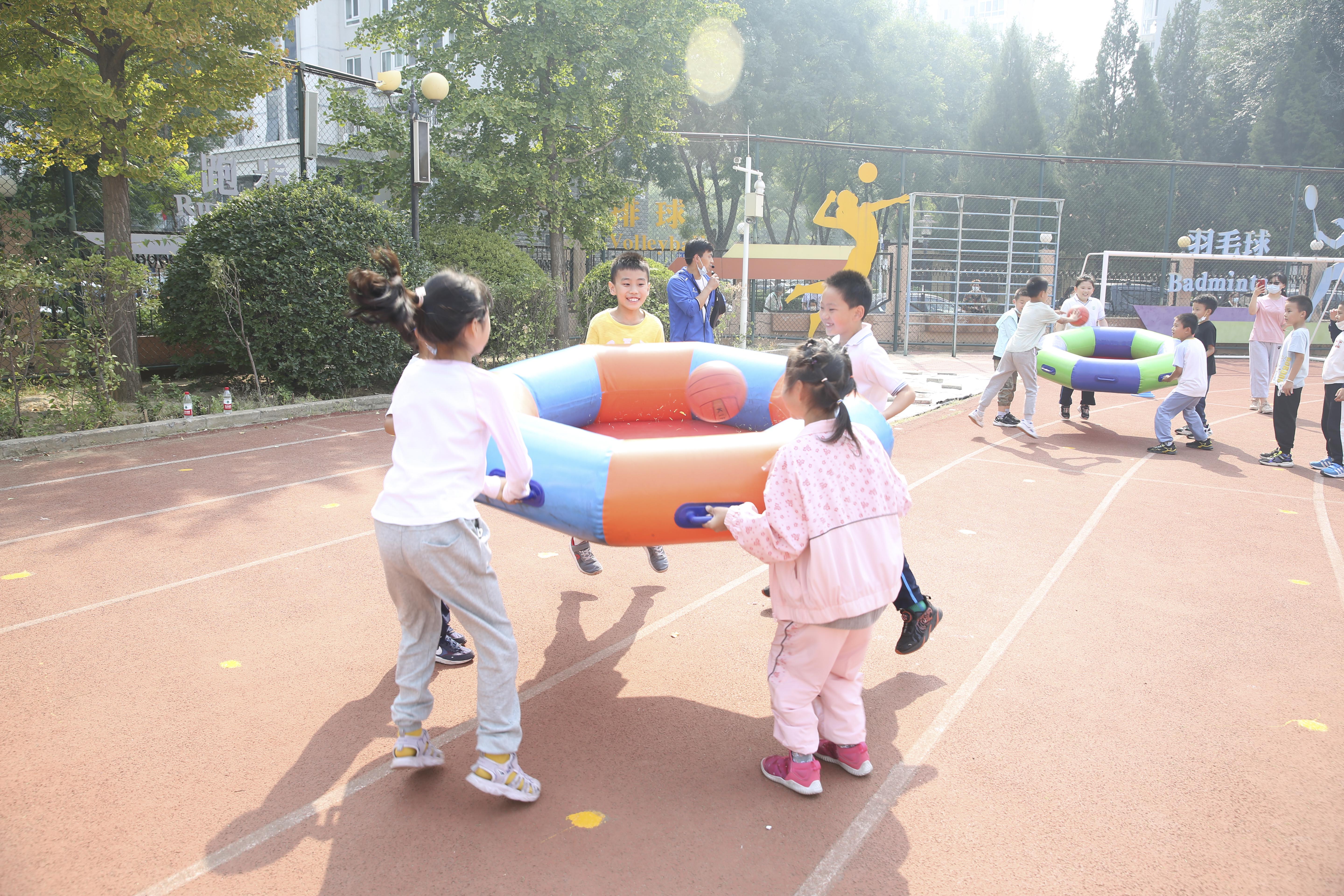 运动周活动项目丰富,足球射门、足球绕杆接力、篮球拍球、篮球绕杆接力、篮球投篮、毛毛虫接力、穿越障碍物接力、夹沙包接力等13个充满趣味的游戏运动项目,吸引众多孩子争相参与。在活动中既有个人项目,又有团体项目,既能强身健体,又能培养孩子们的团结协作精神。活动中,孩子们奋力拼搏、尽显风采,操场上处处洋溢着孩子们银铃般的笑声,犹如欢乐的海洋。