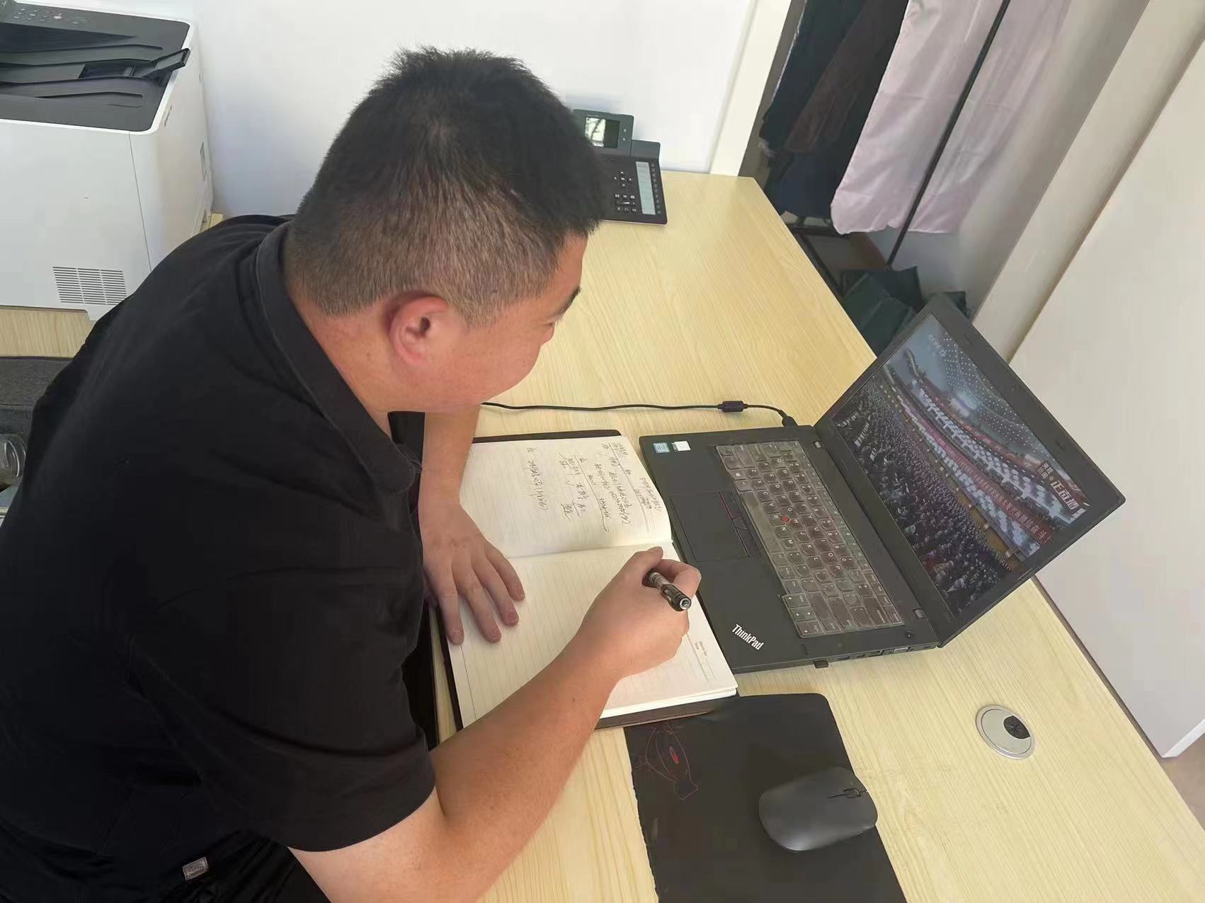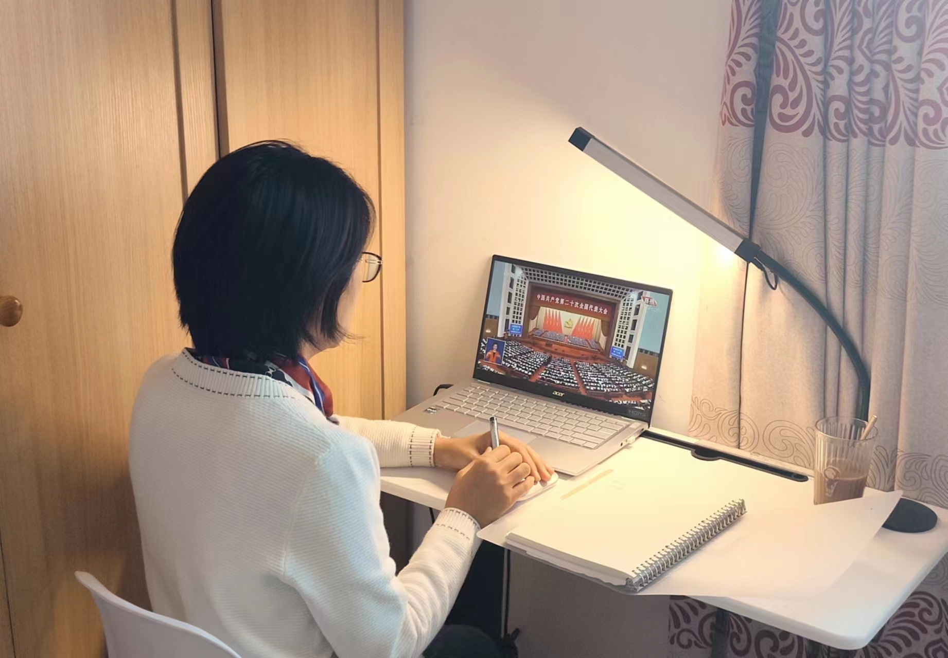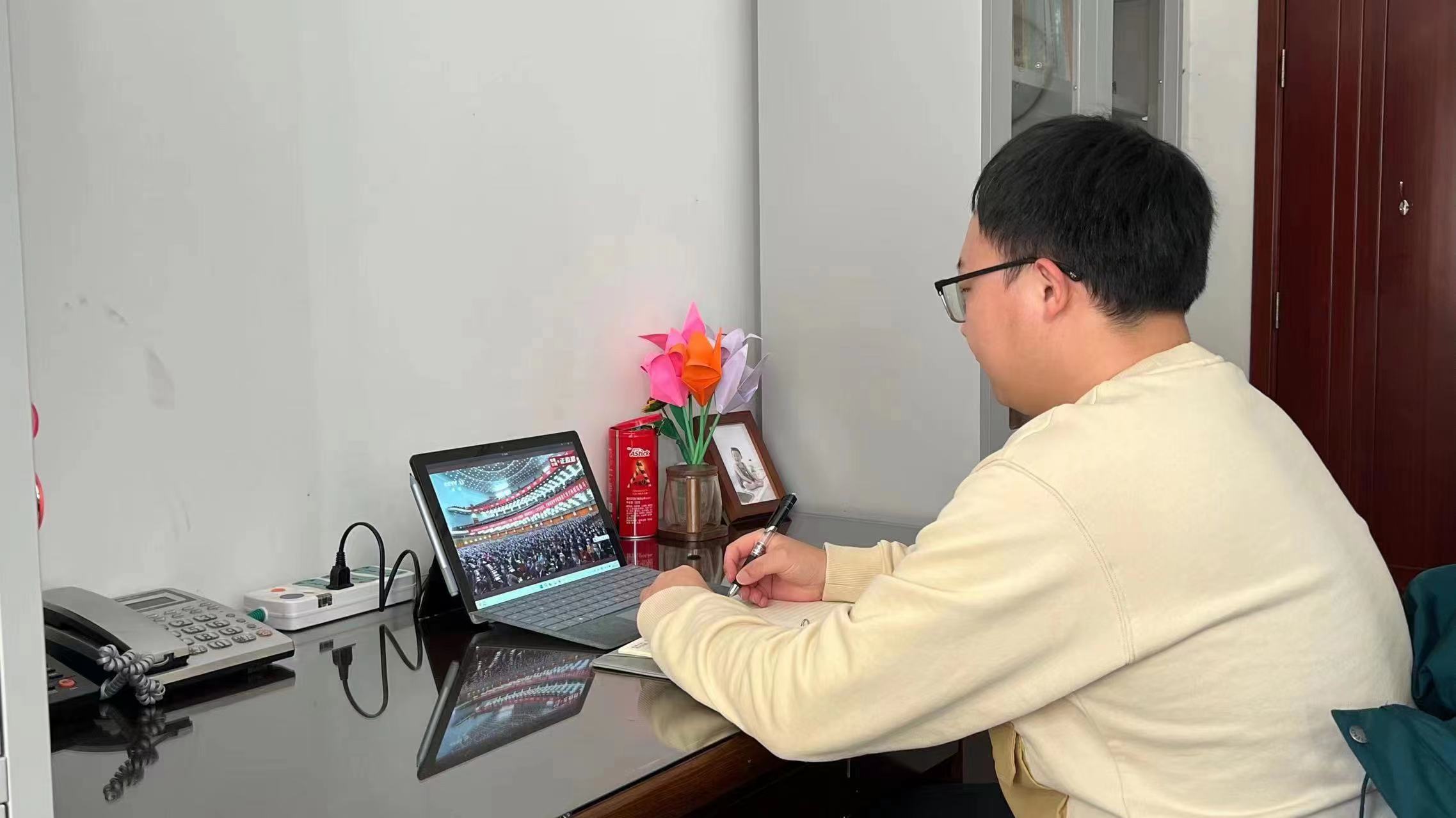 上午9:50,老师们怀着激动的心情在各传播平台前等待大会开幕。随着大会开幕,老师们自觉起立,高唱国歌,并向革命先驱们默哀致敬。开幕会历时近2个小时,习近平总书记的报告激荡群情、催人奋进。老师们认真聆听,边听边记,深入学习领会。