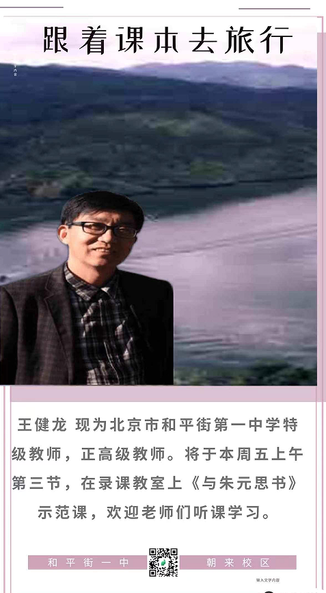 2022年10月14 上午, 北京市和平街第一中学王健龙老师为全校教师和初二10班的学生,讲授八年级上册第三单元山水小品文《与朱元思书》。