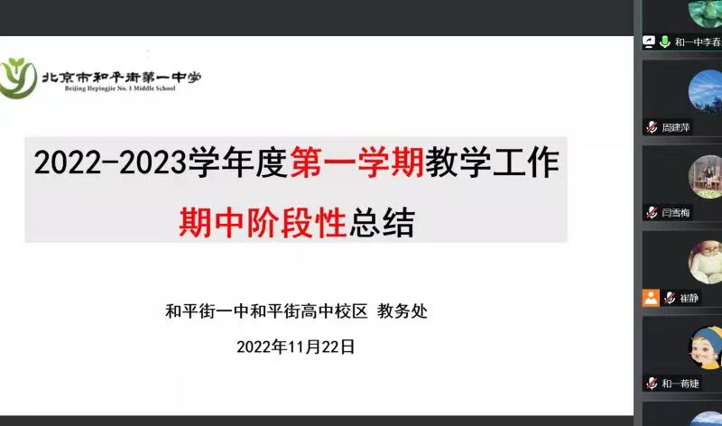 为更好地落实学校工作计划,明确下一阶段学校教育教学工作重点,2022年11月22日下午,和平街一中和平街高中校区召开了2022-2023学年第一学期期中教育教学工作总结会。由于疫情原因,本次会议采取腾讯会议的形式进行。校区全体教职工参加会议。会议由校区主管副校长周建萍主持。