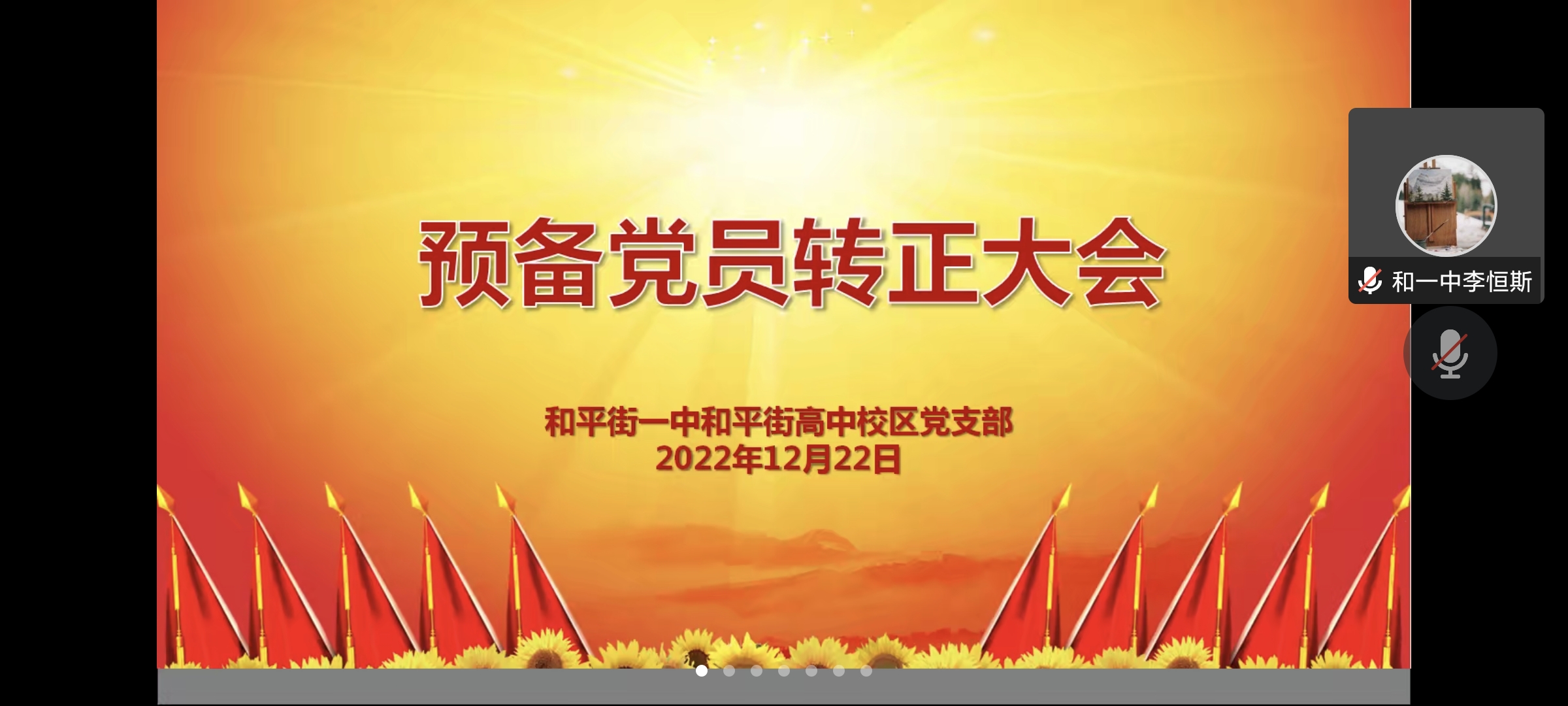2022年12月22日,和平街一中和平街高中校区党支部通过腾讯会议平台召开了刘畅同志的党员转正大会。