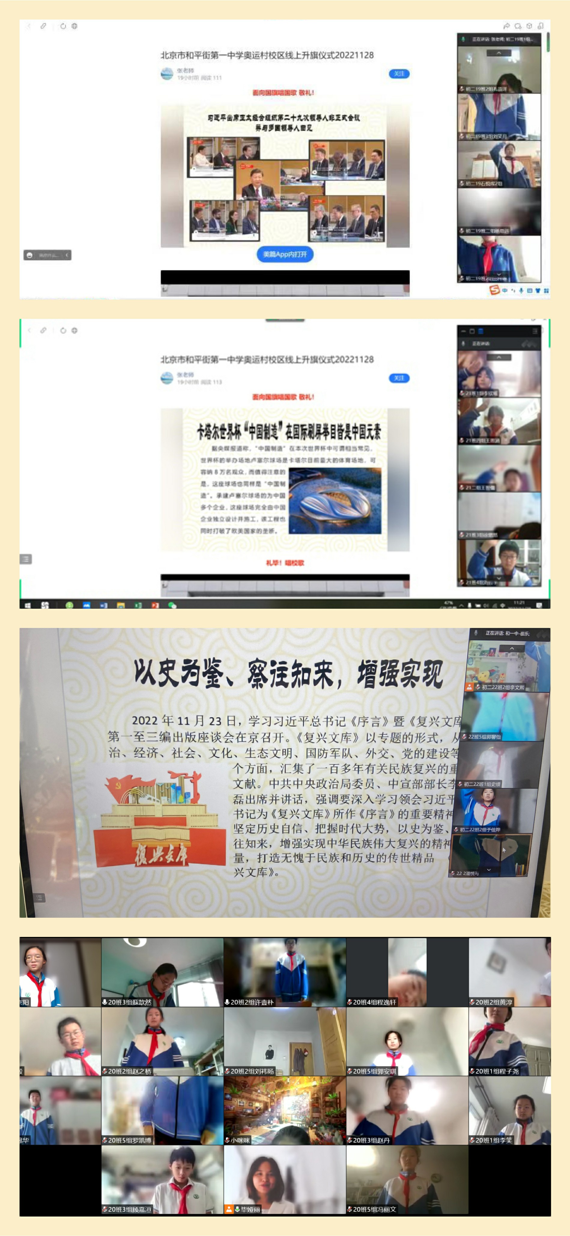 自线上教学以来,每周一的升旗仪式都如期线上举行。学生穿校服,佩戴红领巾或团徽参加线上升旗仪式,不仅仅是仪式感,更是温暖而又有力量的洗礼。