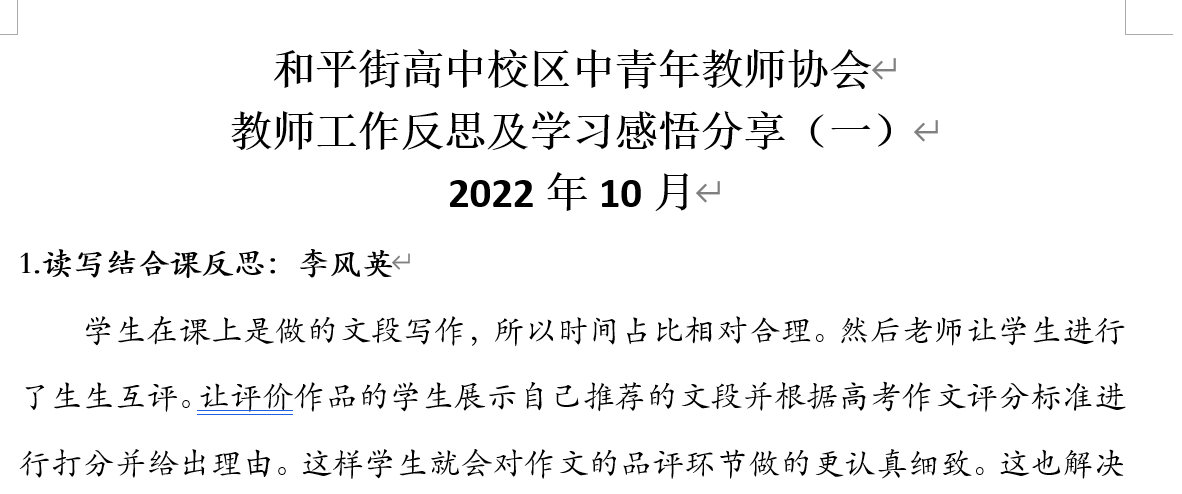 和平街一中和平街高中校区中青年教师协会于2022年9月正式启动。协会章程中规定:每位教师每月至少完成一篇教学反思或学习笔记。三个月以来,全体协会成员自觉遵守章程,共提交反思和学习笔记一百余篇。老师们把自己的教学实践作为认识对象进行思考和梳理,跳出自我,反思自我。尤其线上教学期间,老师们反思提高线上教学质量的策略,反思对学生进行有效线上帮扶的具体做法;线上研究课的开展,促进老师们研究他人的教学长处,通过学习比较,找出理念上的差距,手段、方法上的差异,从而提升自己。老师们提交的学习笔记有摘录式、提纲式、心得式等,反映的是老师们在专业领域、教育理论等方面的学习积累。
