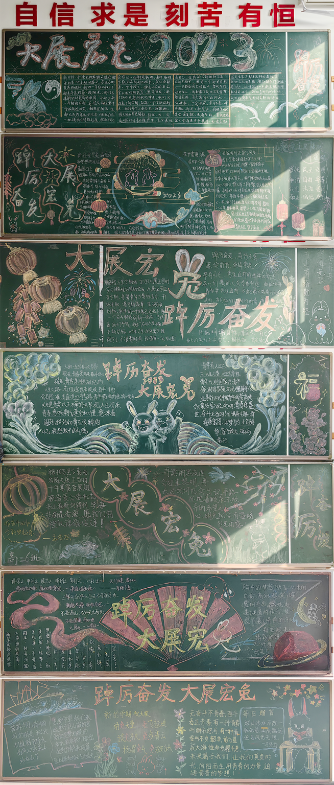 随着新春佳节的结束,轻松、愉快的寒假生活也即将划上圆满的句号,充满希望和挑战的新学期即将到来。为了欢迎同学们返校,营造温馨的校园环境,和平街一中和平街高中校区在2月8日至2月10日期间组织部分学生回到校园,进行教室布置及卫生大扫除。学生们以“踔厉奋发,大展宏‘兔’”为主题绘制了一幅幅振奋人心的黑板报,并写下了温馨又富有创意的欢迎标语,迎接新学期同学们的归来。