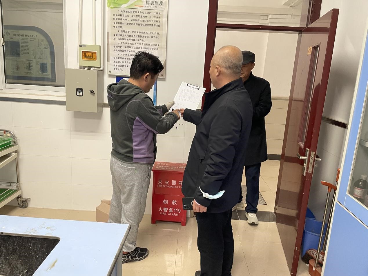 本次检查重点对实验室、办公室、食堂、宿舍及校园周边进行安全巡查。在检查过程中,对安全隐患一一排查。针对出现的问题,第一时间进行整改,并且提醒老师们清明节前离校时断电、锁门。
