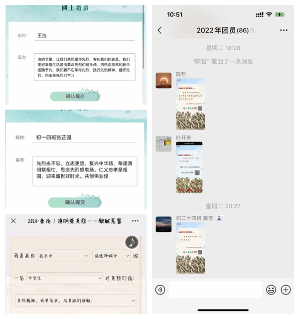 清明,既是我国的二十四节气之一,又是我国最重要的祭祀节日。为引导广大师生慎终追远,缅怀先辈,继承先烈遗志,树立远大理想,自觉培育和践行社会主义核心价值观,2023年4月3日-7日,和平街一中校党委、校团委、校少工委在六校区组织开展了形式多样、内容丰富的“六个一”主题宣传教育活动。组织开展“传承红色基因,缅怀革命先烈”主题升旗仪式,号召全体师生以先烈为榜样,踔厉奋发,砥砺前行;下发倡议书,倡导师生们争做移风易俗、文明祭扫的宣传员、实践者;推出清明节特别栏目,校区广播站向师生播送红色故事,宣扬红色精神;开展红色书籍阅读活动,弘扬历史正气,传承革命精神;号召观看一部红色电影,不断强化守初心担使命的责任意识;组织学生开展“绘清明”手抄报活动,弘扬中华民族文化,牢记宗旨信念;开展师生网上祭英烈活动,抒发对英雄的敬仰之情。