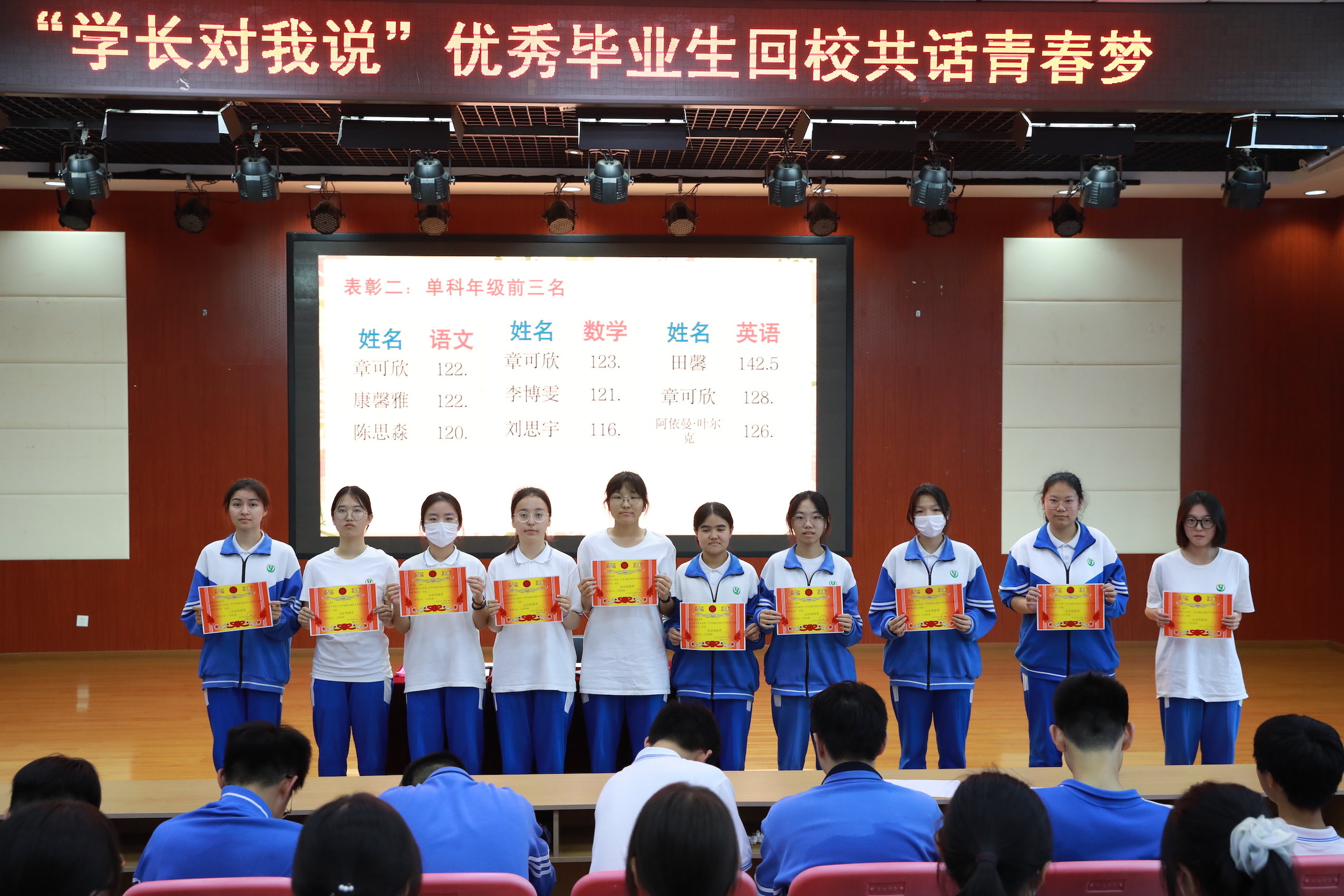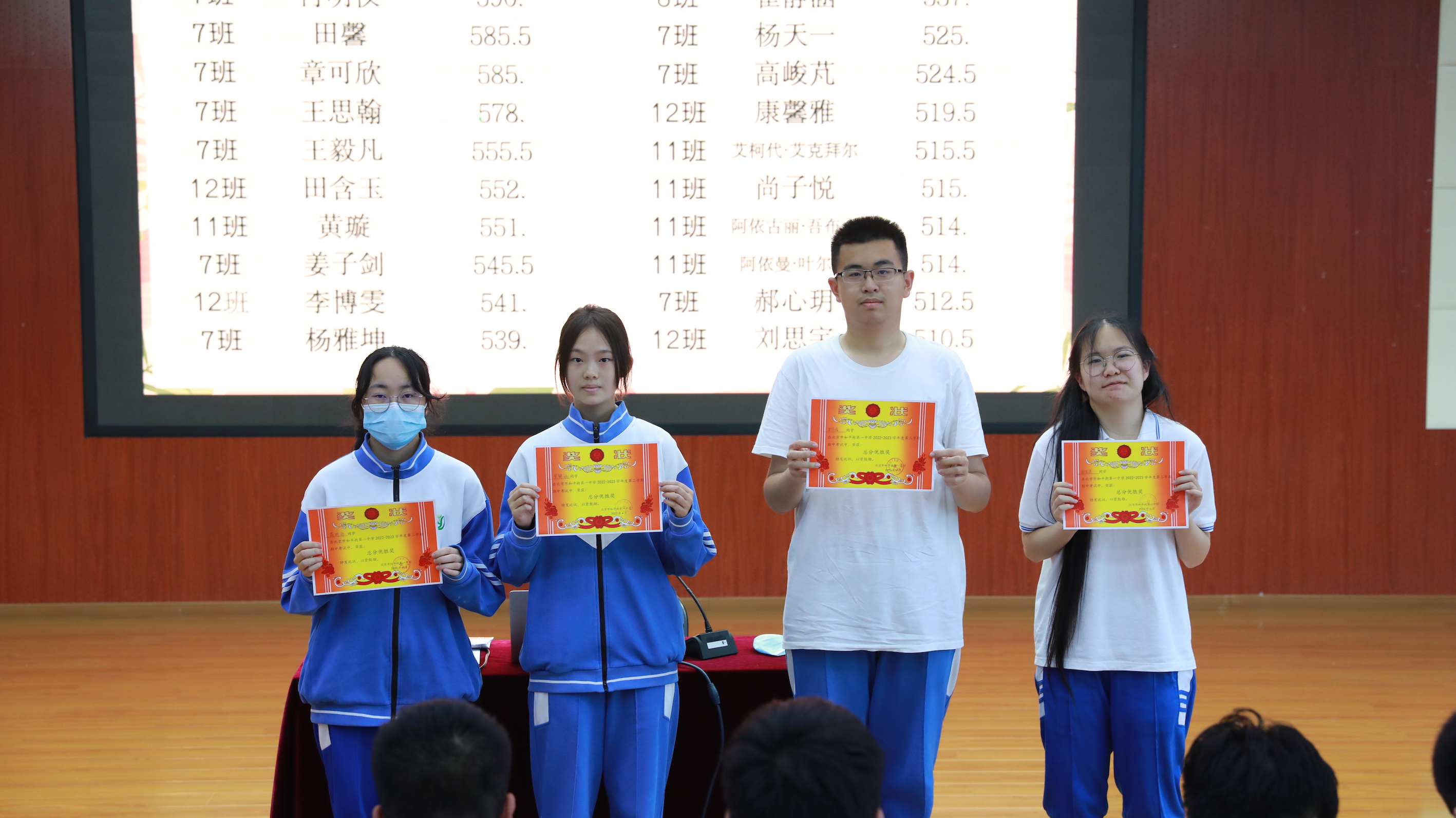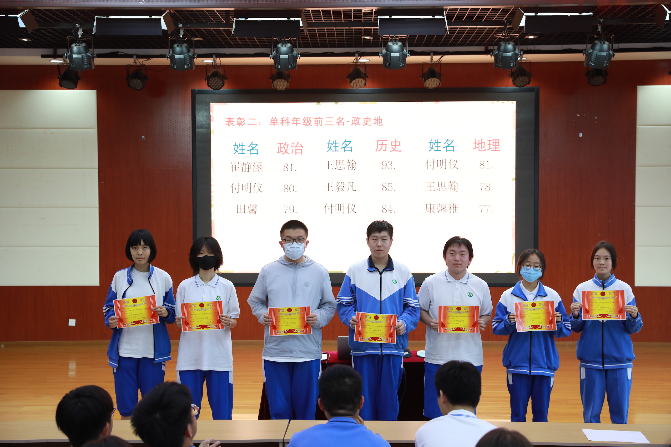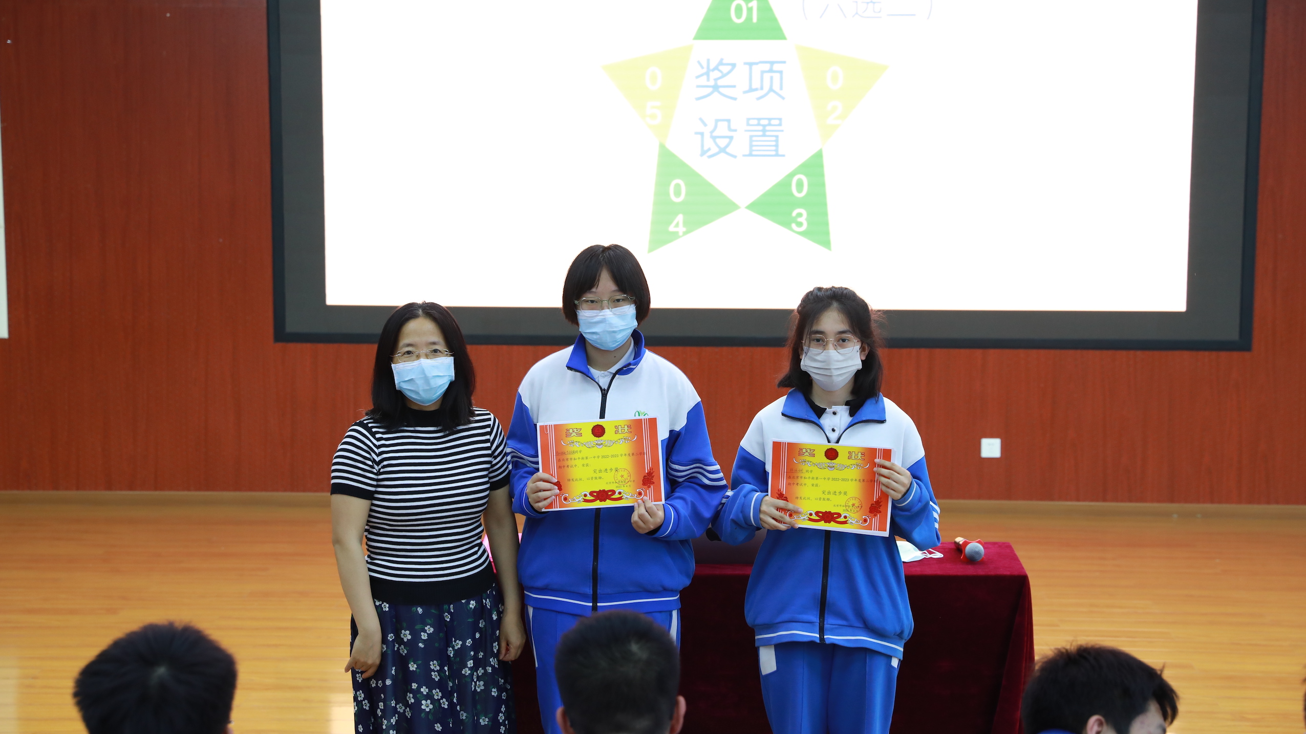 随后,进行了期中优秀表彰。年级组老师为期中成绩总分优异、单科优胜、突出进步的同学和班级颁发奖状。奖状虽小,但代表的是荣誉,是对这些同学努力付出的肯定,同时也将激励着所有同学继续乘风破浪,勇往直前。