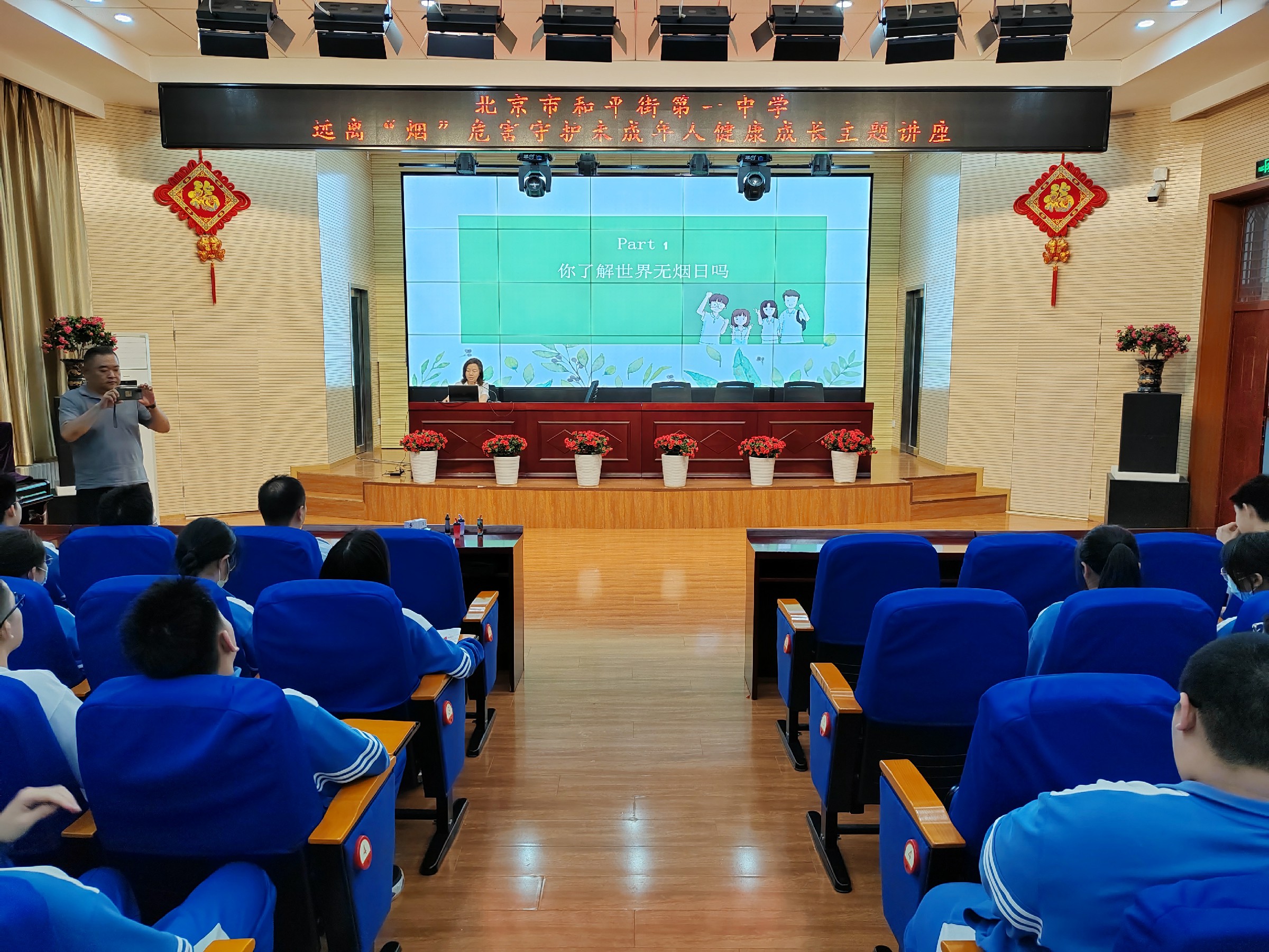 为培养学生健康文明的生活习惯、构建平安和谐的校园环境,5月19日下午,和平街一中和平街高中校区特邀北京市朝阳区烟草专卖局的柴汝静老师到校开展“远离‘烟’危害,守护未成年人健康成长”的专题讲座,高二年级全体师生认真聆听了这场精彩的讲座。