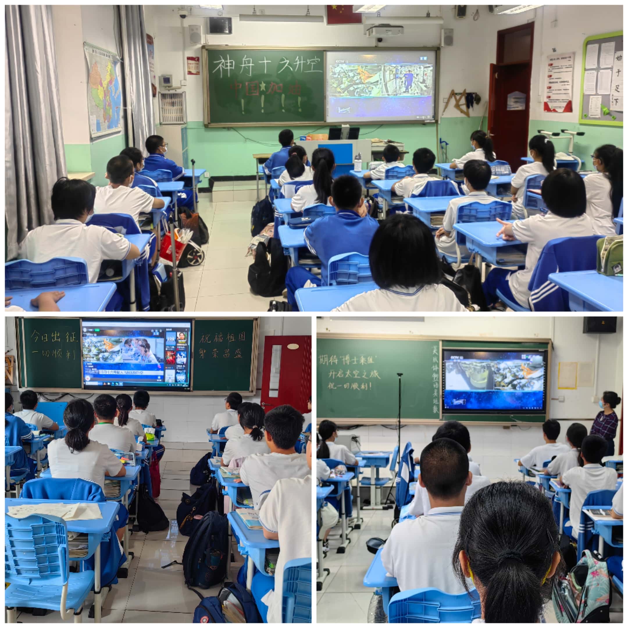 和平街初中校区坚持五育并举,切实落实对学生的理想信念教育,观看神州十六号发射直播使学生们直观地感受到祖国航天事业的蓬勃发展,共同见证了中国力量,同时也激发了学生探索宇宙的梦想,树立起投身祖国科技事业的远大志向。