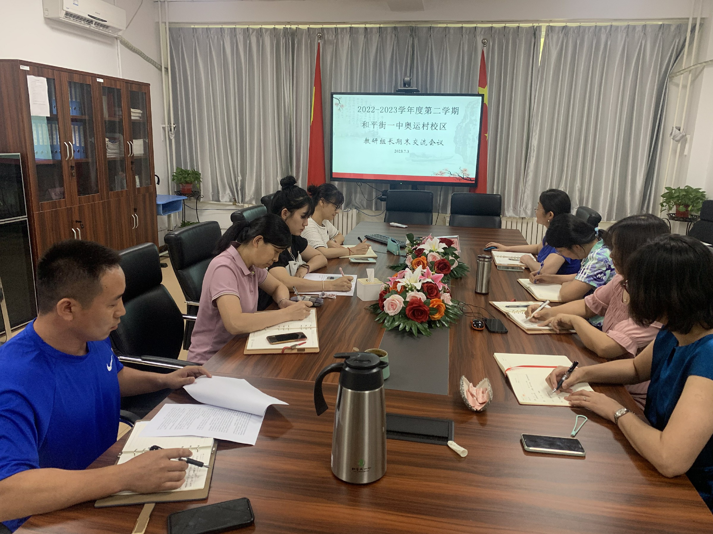时光荏苒,一个紧张、充实、有序、奋进的学期即将结束。经过一学期的学习、磨合、研讨,和平街一中奥运村校区形成了一个又一个富有凝聚力的教研组。各组老师对工作用心主动、兢兢业业,以饱满的工作热情,十足的干劲,圆满地完成了本学期的各项任务。2023年7月3日上午,和平街一中奥运村校区召开教研组长总结交流会,校区主管王瑾和教务主任冯英参加此次会议。