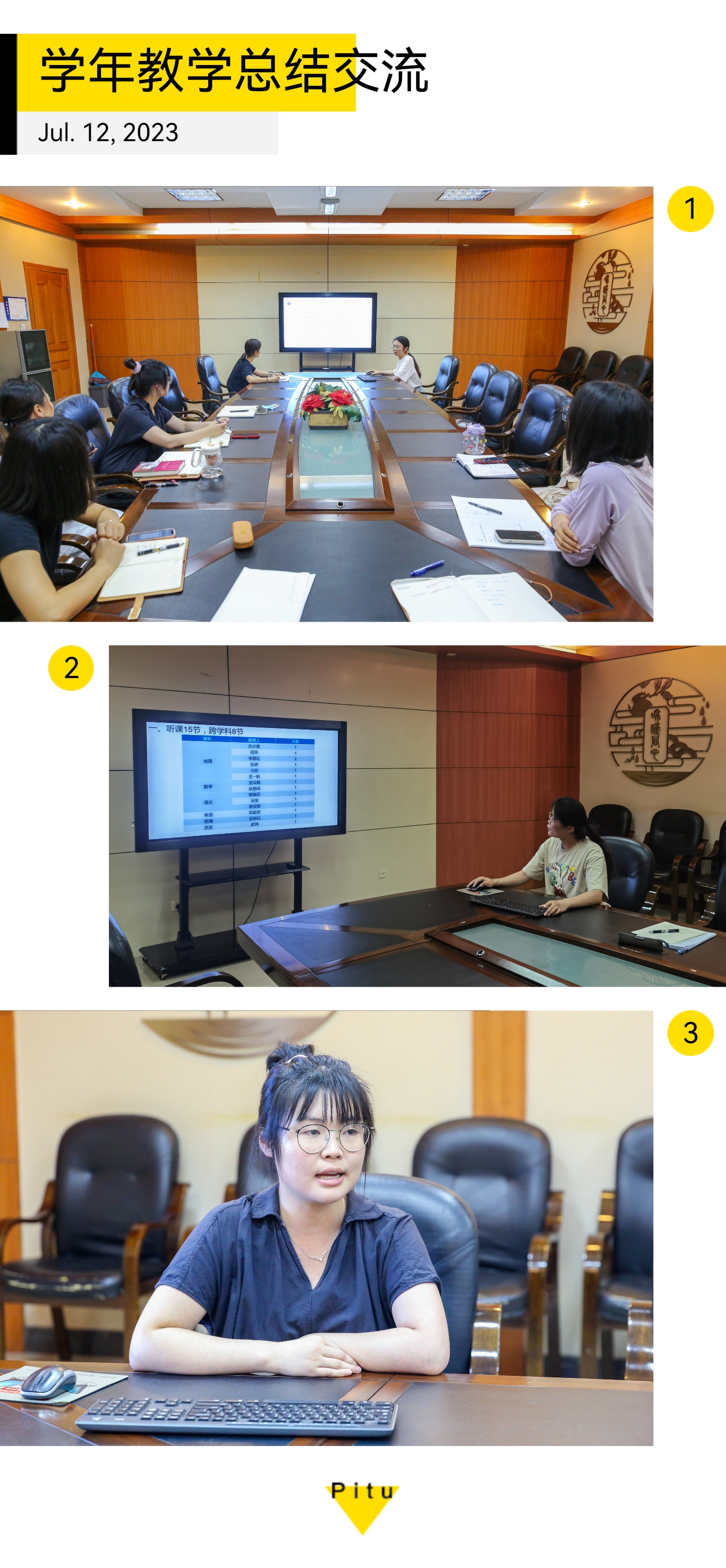 2023年7月12日,和平街一中莲葩园校区如期开展了青年教师学年教学交流活动,为本学年的青年教师系统化培训画上句号。