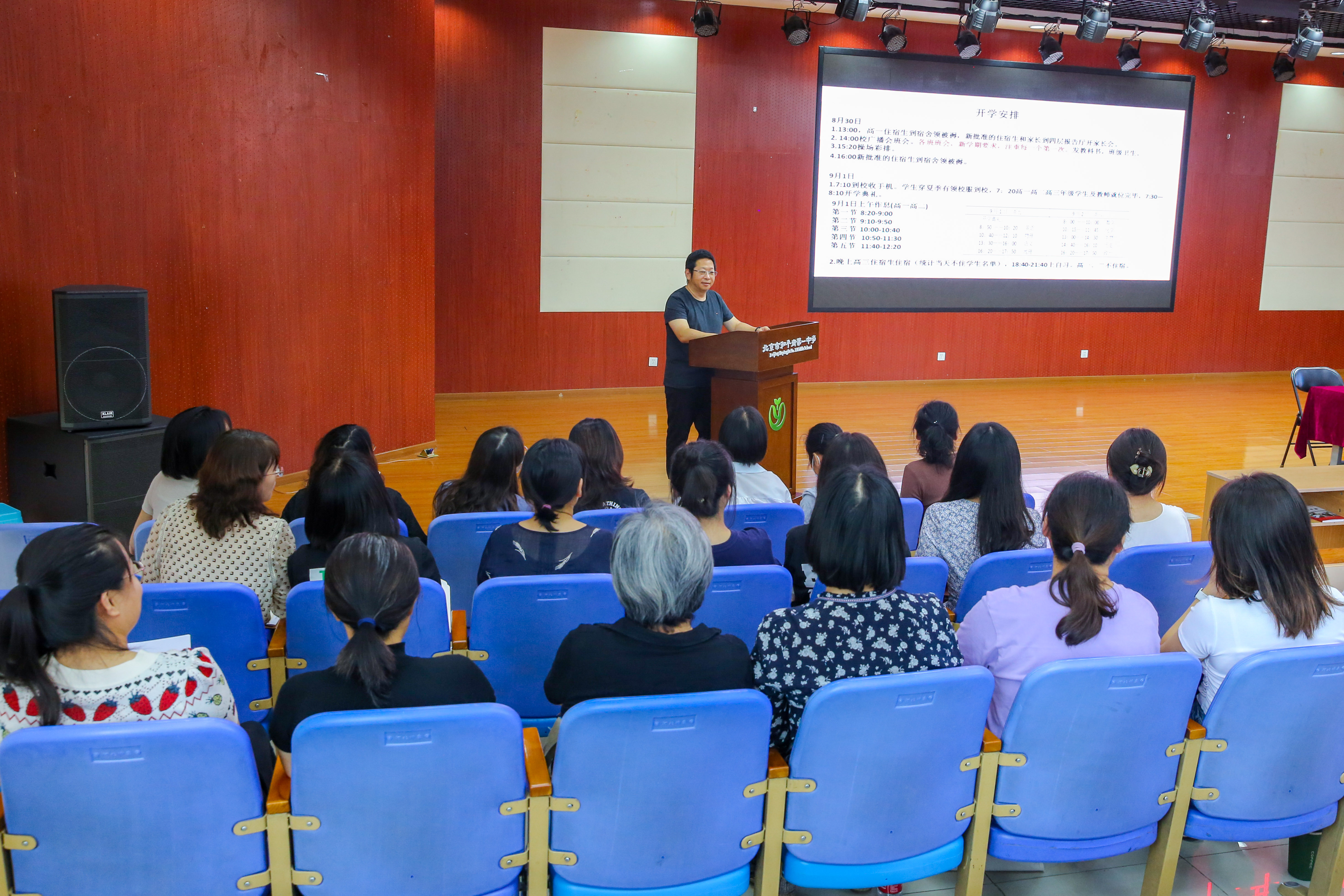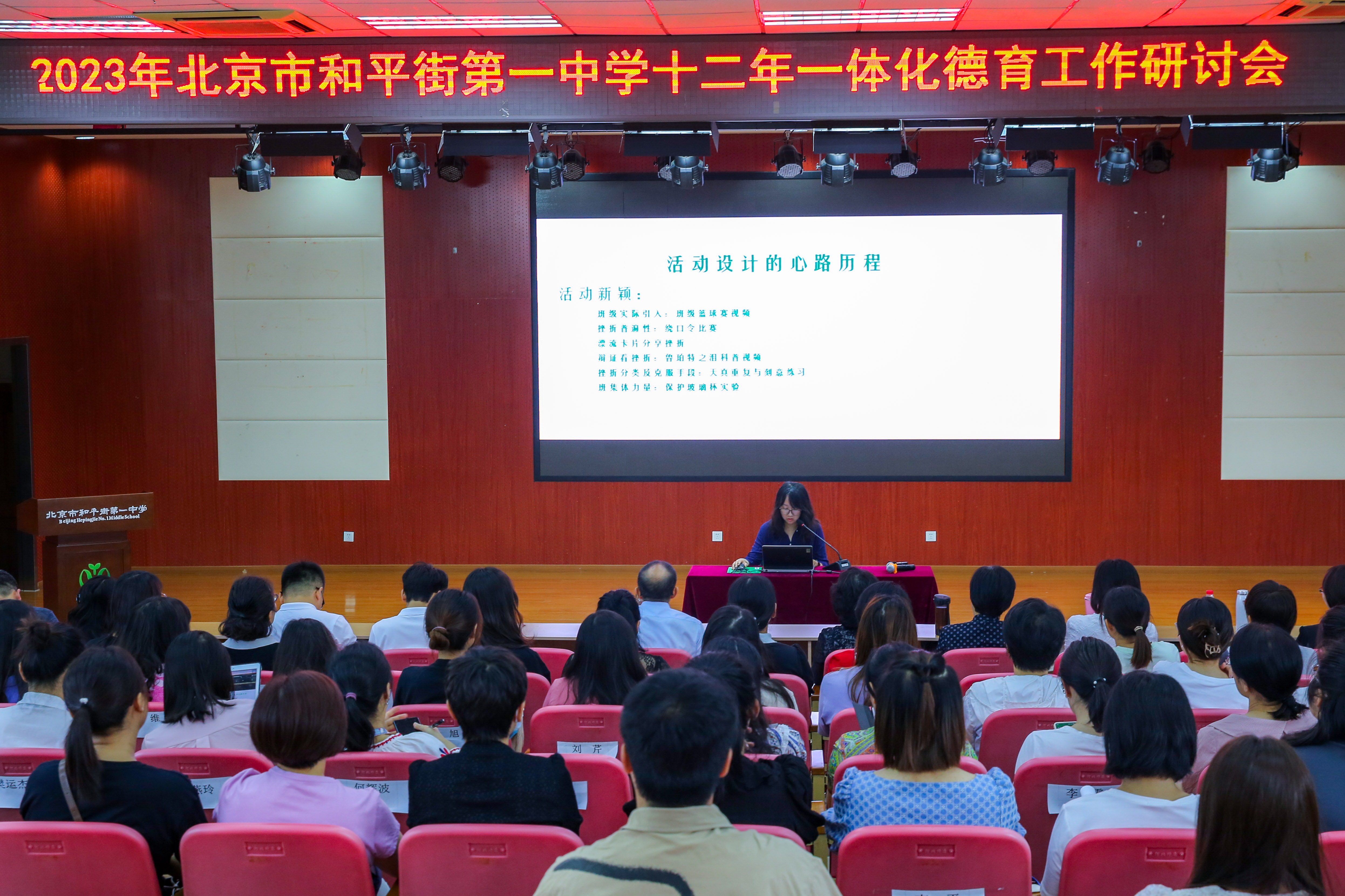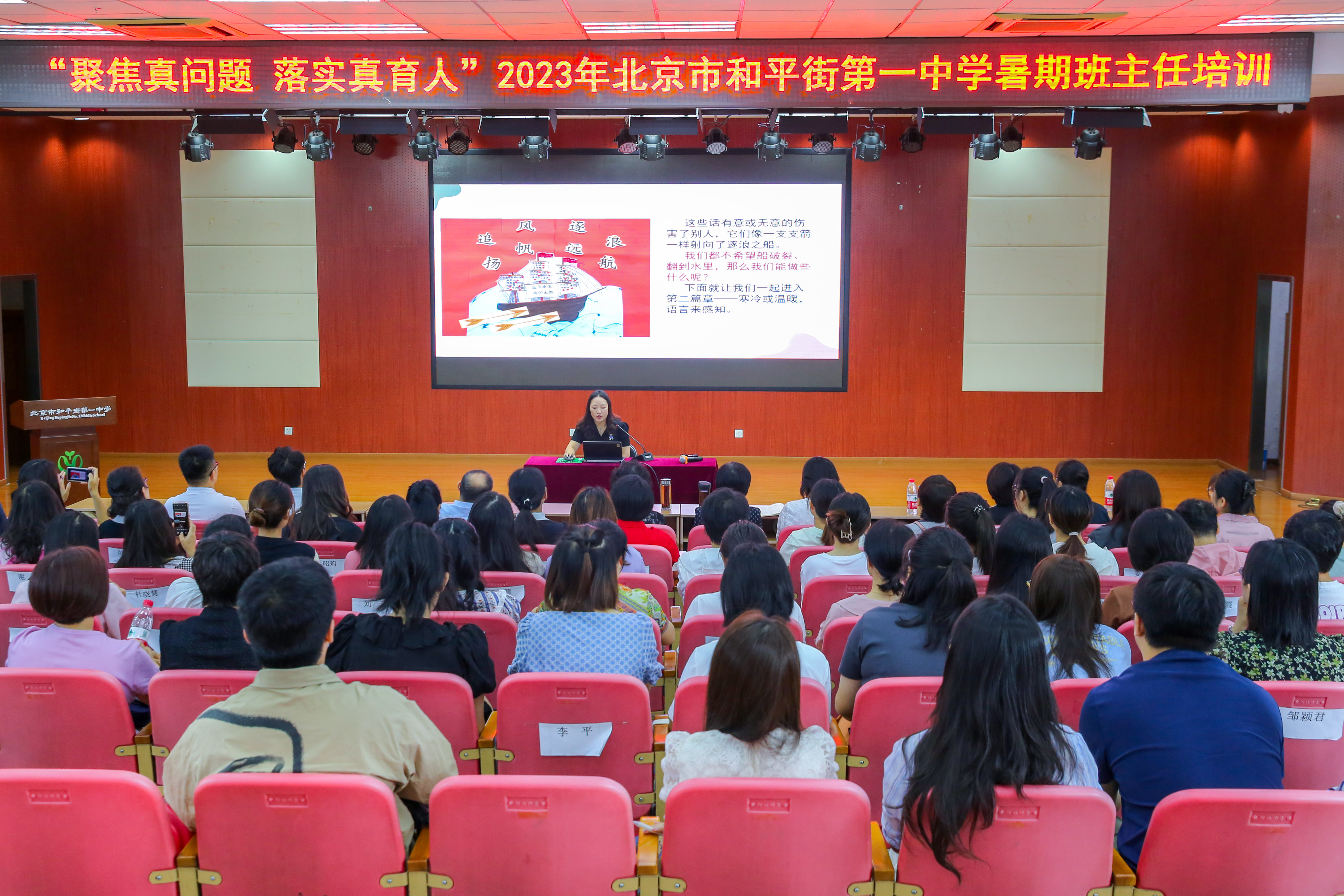 为认真贯彻党的二十大精神,贯彻落实《中国教育现代化2035》、《国务院关于实施健康中国行动的意见》、《全面加强和改进新时代学生心理健康工作专项行动计划(2023—2025年)》,提高学校素质教育水平,提升学校办学品味。2023年8月28日上午,北京市和平街第一中学隆重举行2023-2024学年度第一学期班主任培训会。