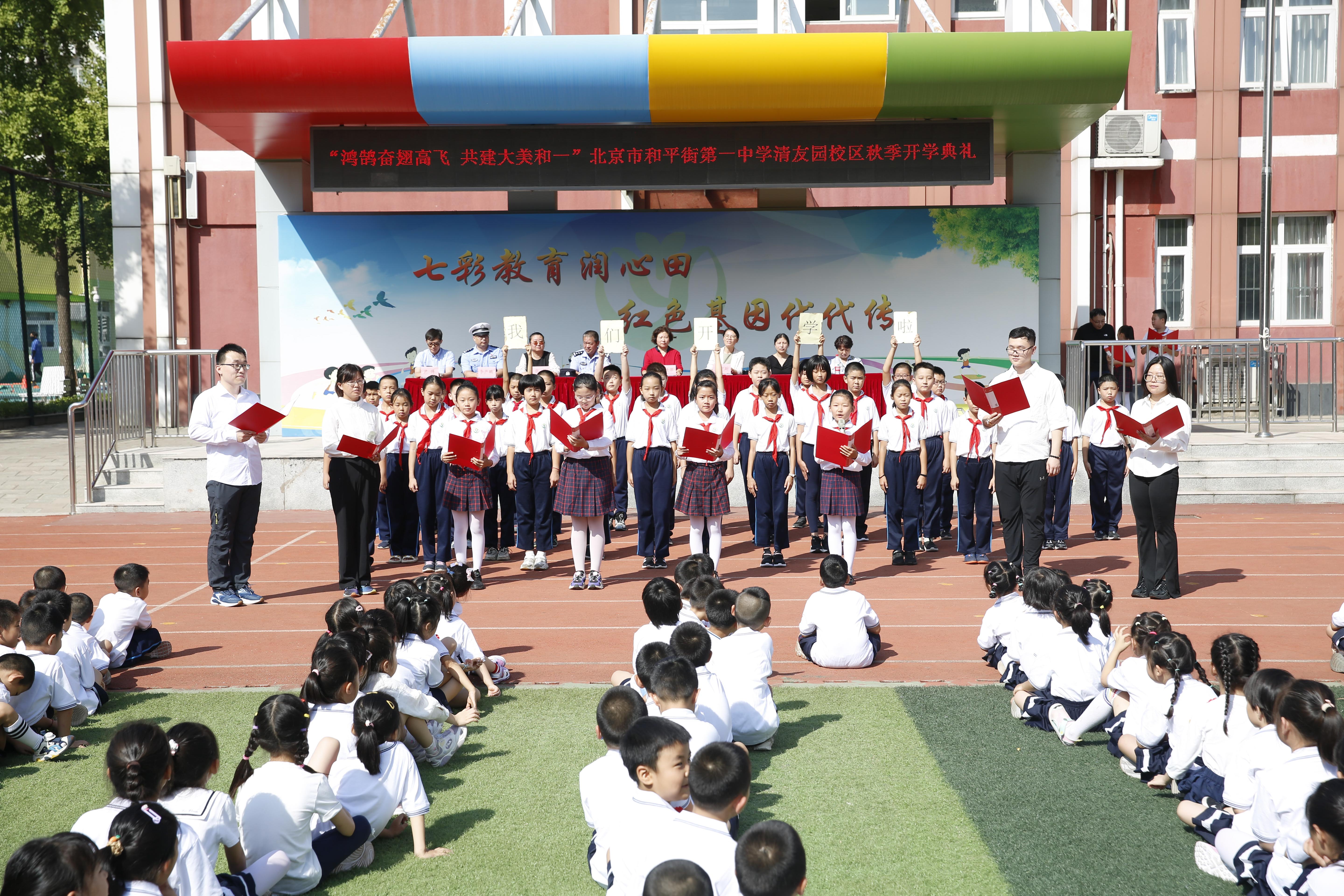 北京市和平街第一中学清友园校区于2023年9月1日隆重举行开学典礼,为新学期的到来开启了崭新的篇章。典礼以“鸿鹄奋翅高飞 共建大美和一”为主题,寓意着学校将引领学子们积极奋进,共同构筑美好未来。