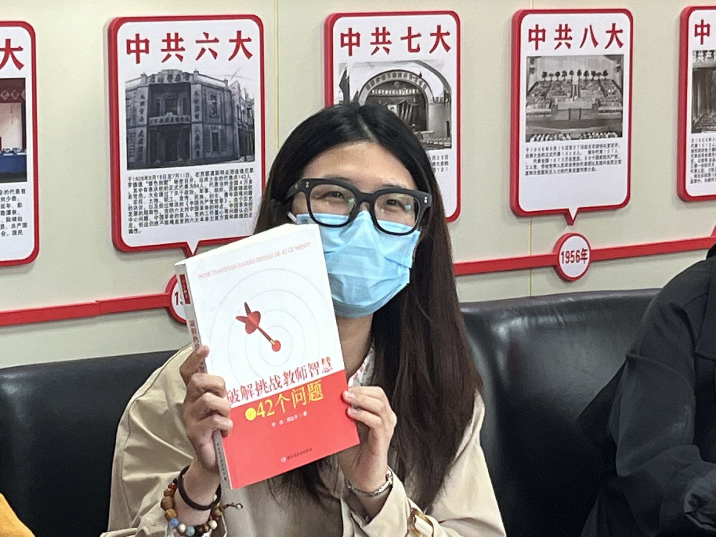 刘浩宇老师交流了《整体课堂管理教师手册》一书的读书心得,认为在中考改革的趋势下,以学生为本的课堂上,教师更应该思考课堂设计的意义。杨阳老师分享了《破解挑战教师智慧》一书的读书体会。该书中包含了丰富的案例,并针对问题进行分析、提出解决措施。她以班级公约为例,向大家展示了书中针对这一问题所展开的分析和提示,并结合自己的实际情况分享了自己的感悟和心得。