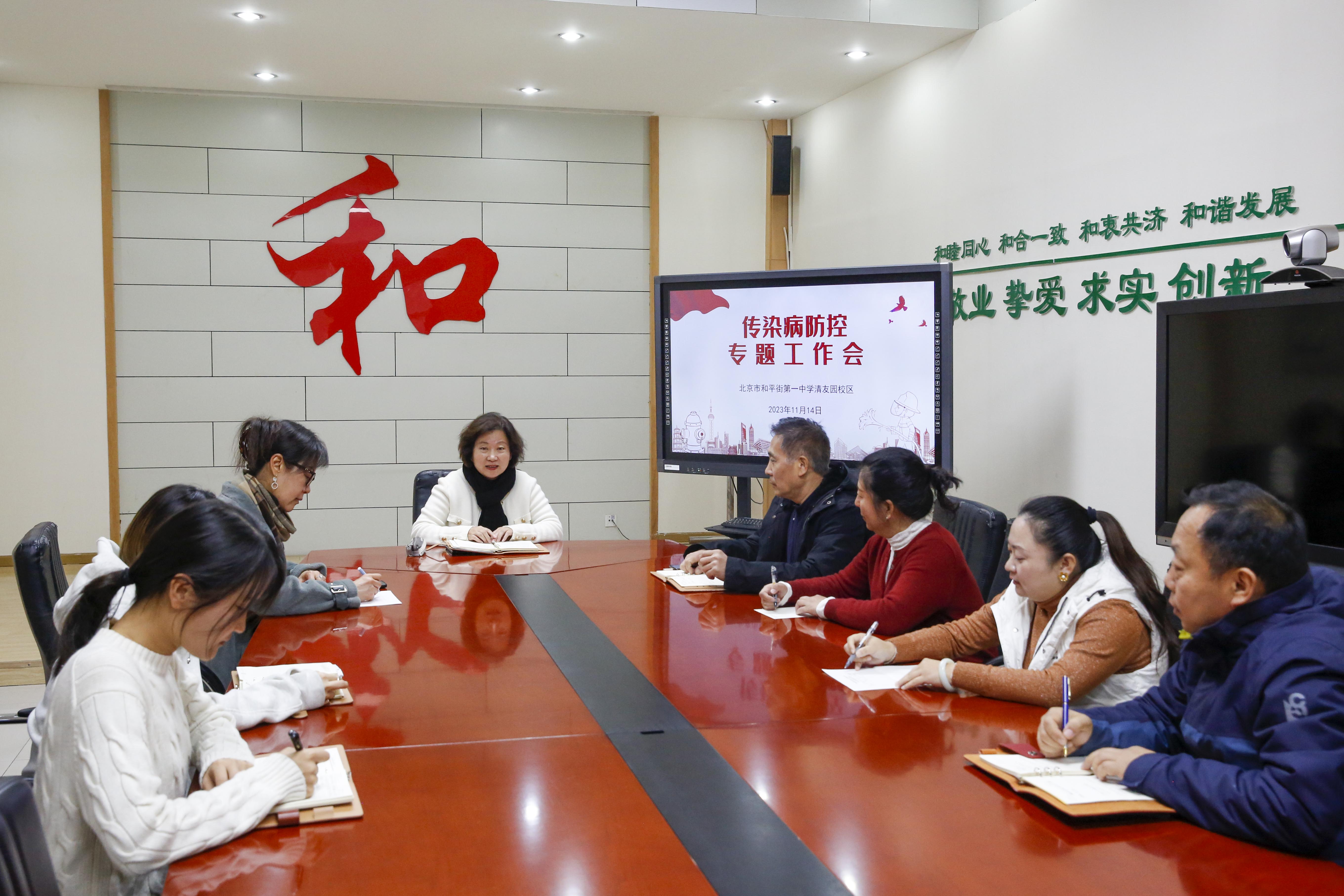 2023年11月14日上午,清友园校区召开秋冬季传染病防控专题工作会,旨在加强全校师生的传染病防控意识和措施。会议由副校长殷桂萍主持,校区部分行政干部及两位校医参会。