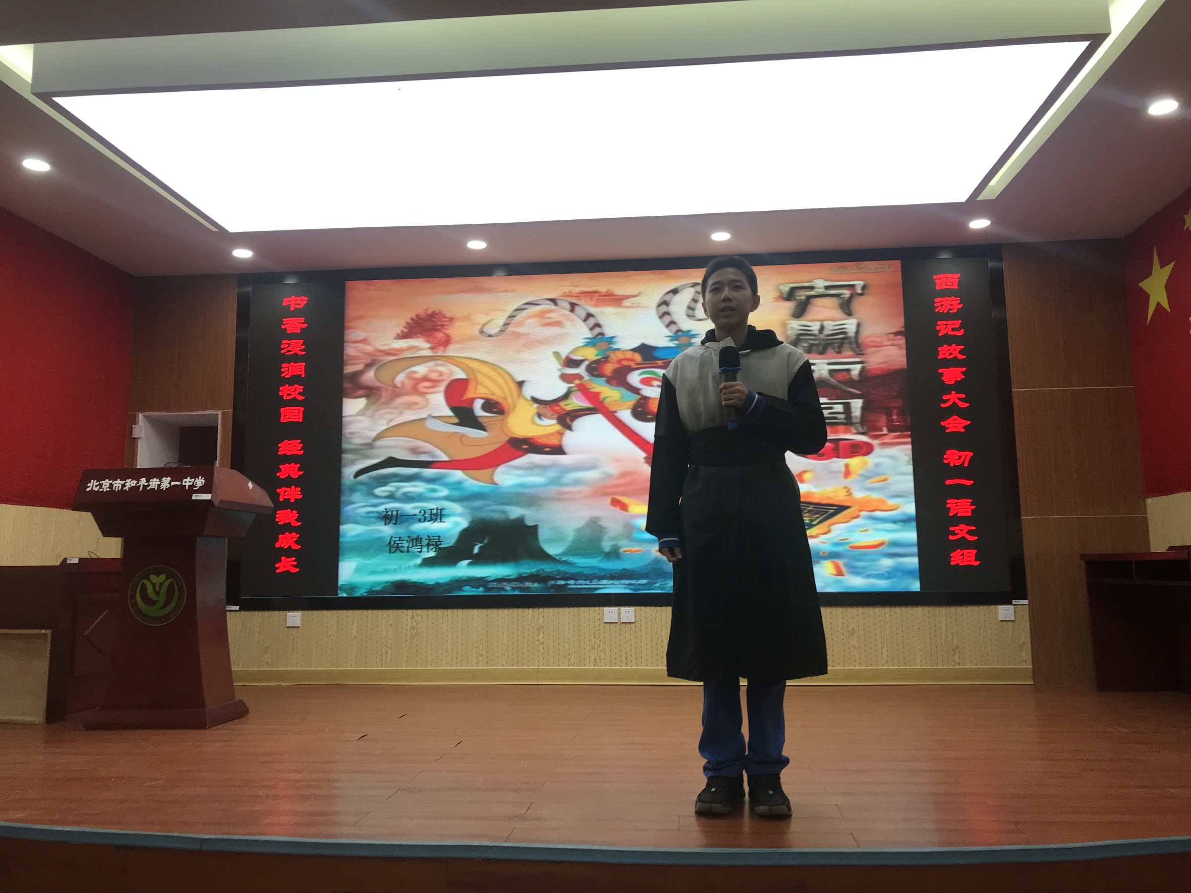 2023年12月5日下午,和平街校区初一年级以“书香浸润校园,经典伴我成长”为主题的《西游记》故事大会在礼堂顺利举行。这场故事大会以多种形式呈现了《西游记》中的经典故事,如《高老庄行者降妖》、《流沙河》以及《大闹天宫》等,内容丰富且形式多样。每一个精彩的节目都给现场的观众留下了深刻的印象,并赢得了热烈的掌声。最后,全体学生以一首《西游记》主题歌曲《敢问路在前方》将活动推向了高潮。