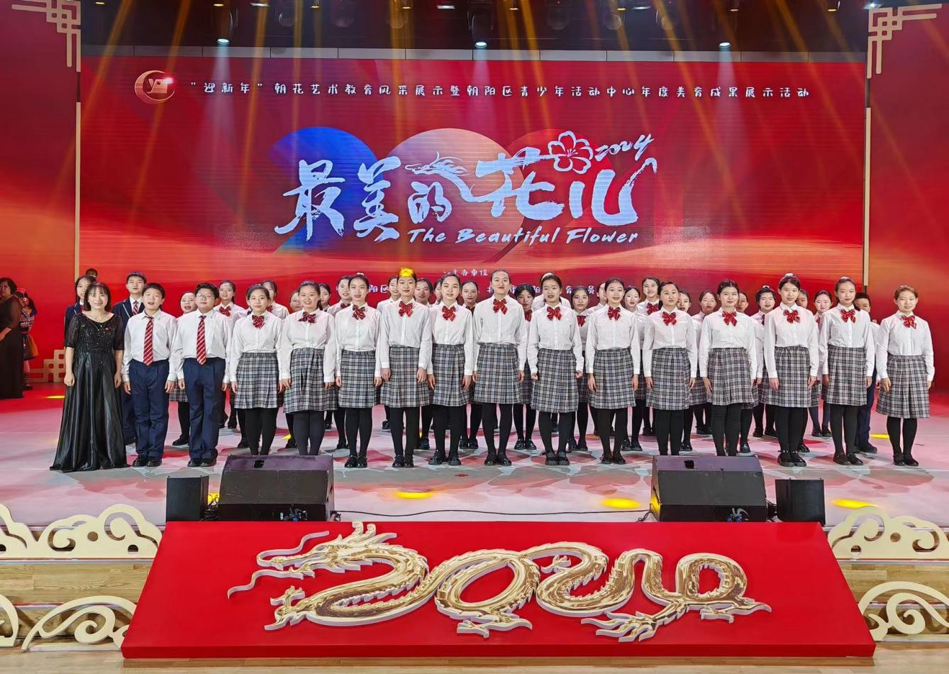 12月29日下午,和平街初中校区合唱团参加了由朝阳区教工委、朝阳区教委主办,朝阳区青少年活动中心承办的“最美的花儿”--“迎新年”朝花艺术风采展示暨朝阳区青少年活动中心年度美育展示活动。