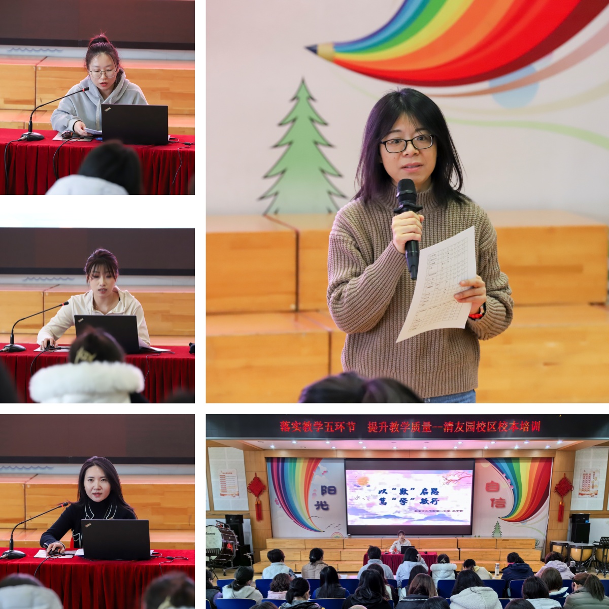 为进一步提高课堂质量,提升教师执教水平,清友园校区于3月7日下午举行了“落实教学五环节 提高教学质量”主题校本培训。培训由教学主任李亚主持,侯俊、王子萌、周家宇三位老师主讲,全体语、数、英教师参会学习。