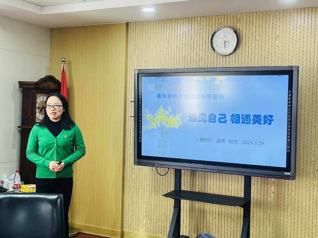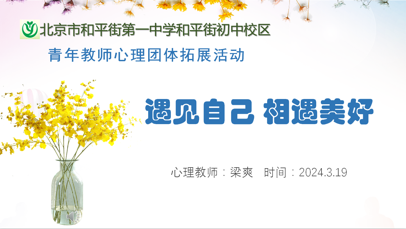 关爱教师心灵,助力教师成长。3月19日下午,和平街初中校区举行了主题为“遇见自己,相遇美好”的青年教师心理团体拓展活动。活动由心理教师梁爽主持。