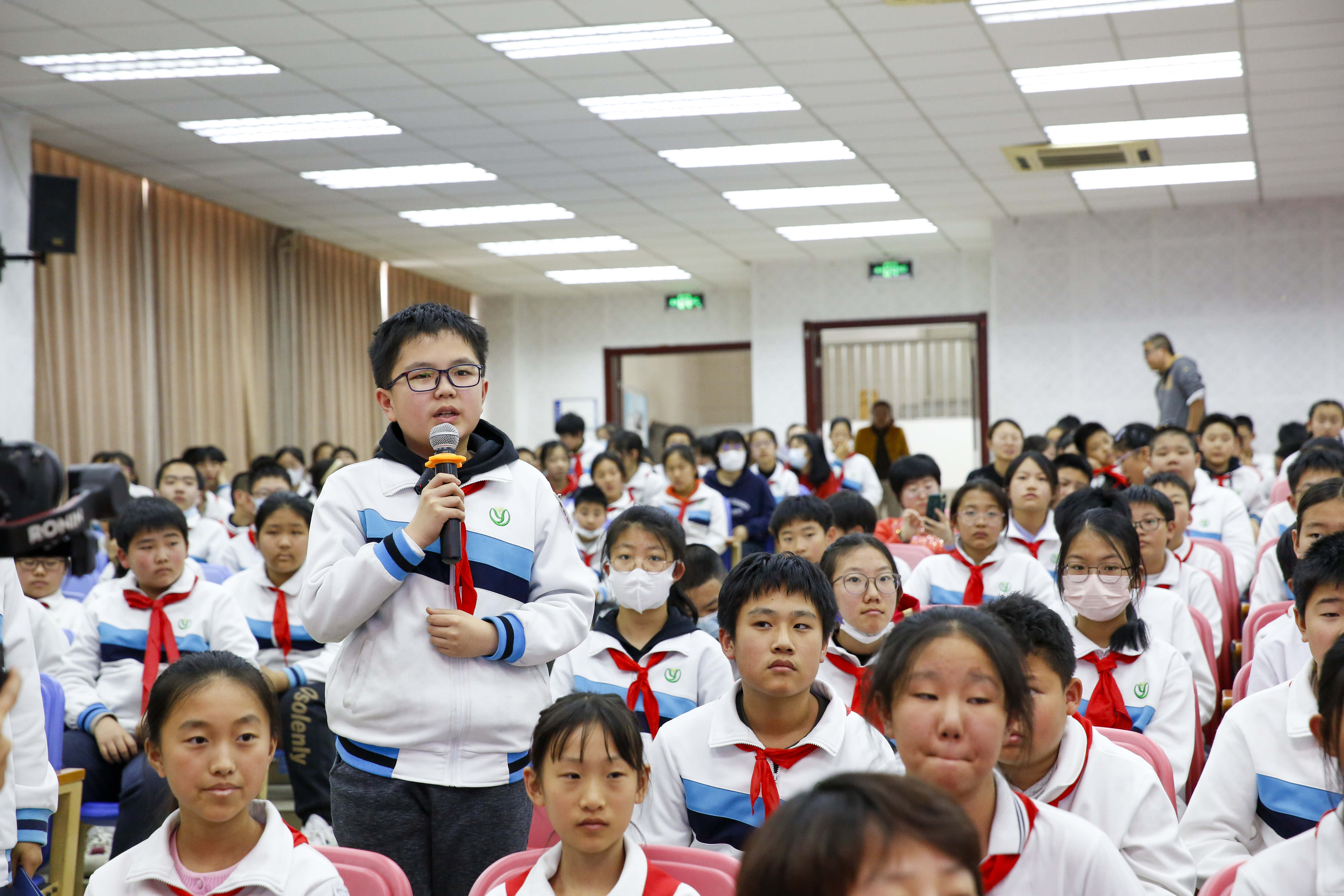 在与邹女士的互动环节中,学生们纷纷表示,“作为新时代的少年,我们要学习他那种对科学真理的追求,对祖国人民的忠诚,以及不畏艰难、勇往直前的精神;我们要将这种精神内化于心、外化于行,努力成为有理想、有道德、有文化、有纪律的新时代少年,为祖国的繁荣富强贡献自己的力量。”