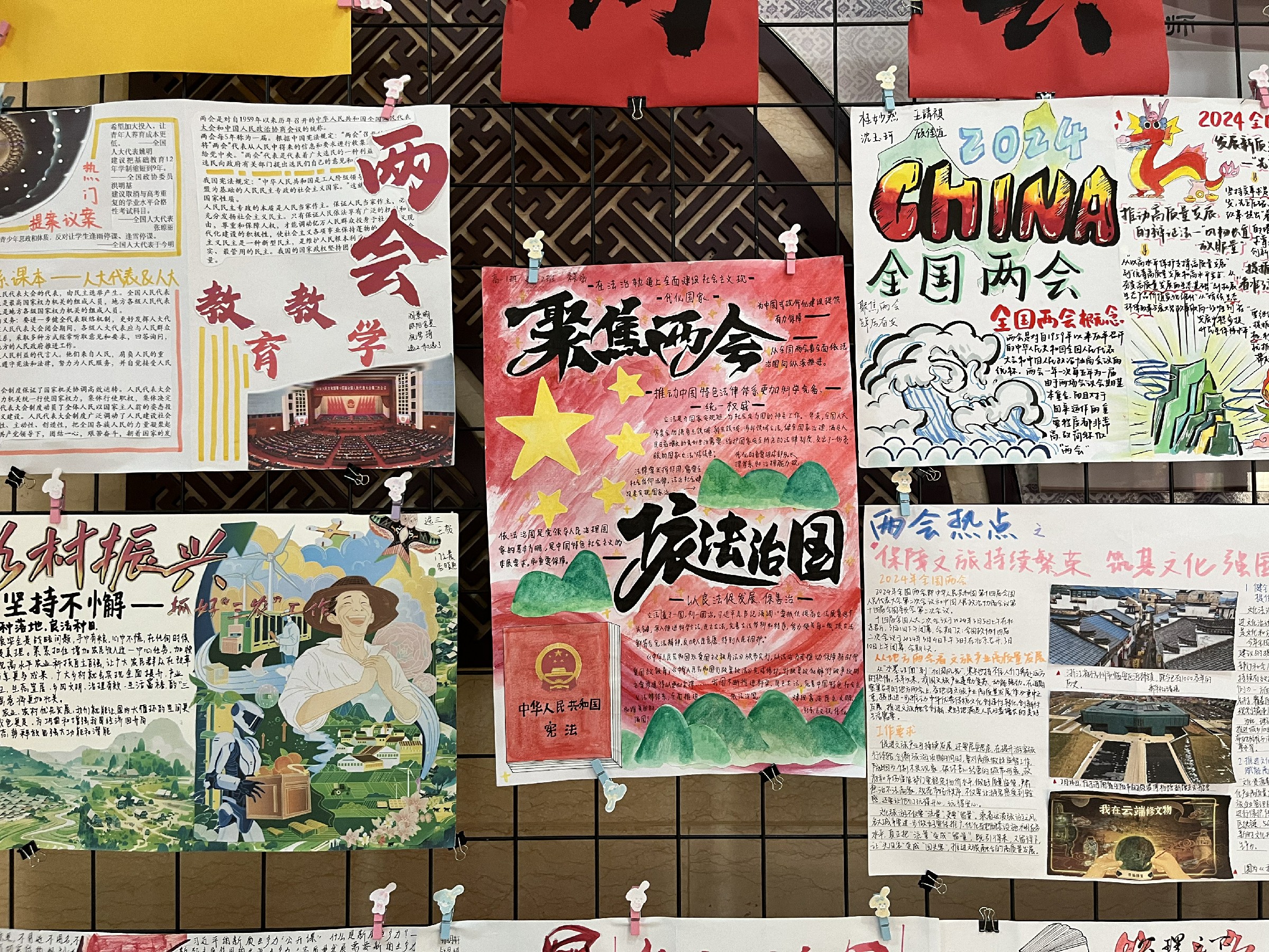 2024年3月,和平街高中校区政治教研组紧抓两会契机,充分发挥思政课程在立德树人中的核心作用,携手高一、高二年级组,共同策划并举办了以“两会青年说”为主题的学科月活动,旨在激发学生的爱国情怀,坚定其对中国特色社会主义的信仰,引导他们将课堂所学与现实生活相结合,深刻领悟全过程人民民主的真谛。两会召开期间,政治教研组的老师们组织学生在课堂上开展时政述评,学生们各抒己见,就两会的热点议题展开热烈讨论。两会闭幕后,学生们纷纷拿起画笔,用一幅幅内容精彩、构思精巧的作品表达他们对两会的感悟和理解。此次活动不仅拓展了学生视野,提升了其政治参与意识,还为他们提供了展示自我的平台,促进了学生全面发展。