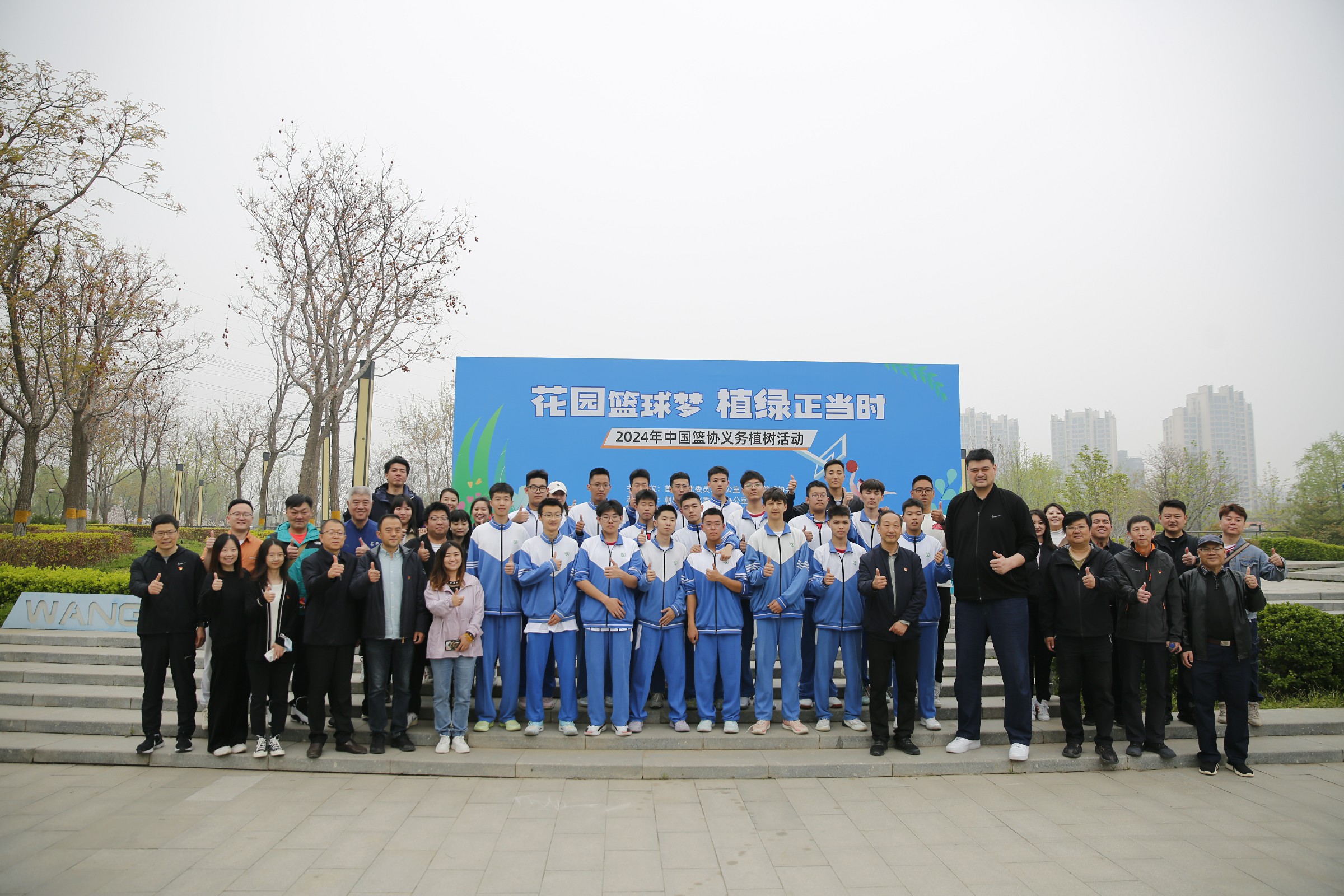 4月12日上午,“花园篮球梦 植绿正当时”2024年中国篮协义务植树活动在朝阳区望和公园举行。中国篮球协会的领导姚明、郭振明、徐济成、杨阳和徐岚等,以及中国篮球名人堂的代表宋晓波和匡鲁彬等,共计80余人参加活动。和平街一中篮球社团的师生们有幸参与到这场意义非凡的植树活动中,与篮球界的精英们一起,为首都花园城市建设添砖加瓦,为望和公园增添一抹新绿。