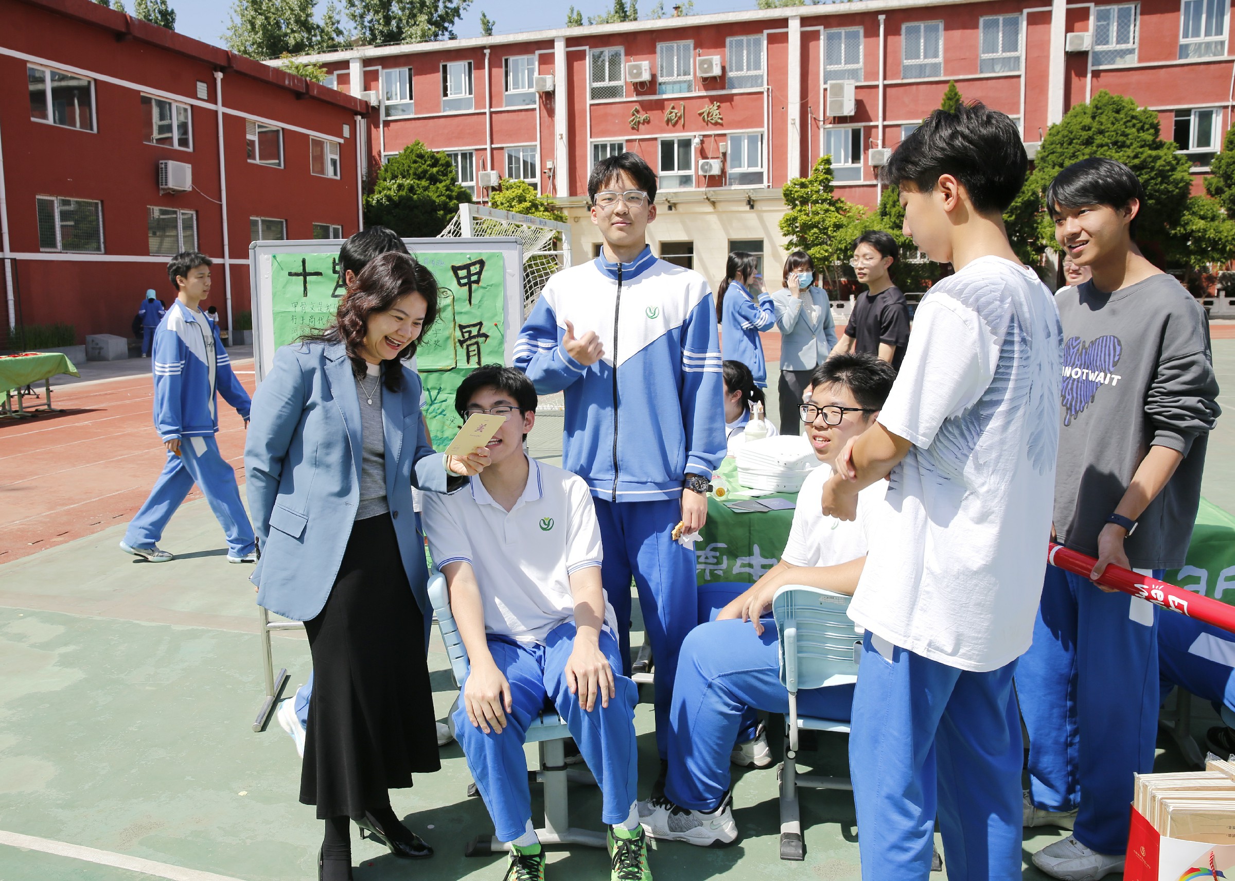 随着游园会的进行,即将面临高考的高三同学也加入了其中。他们还有三十几天高考,这次游园会是他们放松精神、调节状态的好机会。他们意趣满满,在每个项目前流连参与,赢得小奖品时爽朗的笑声成为了游园会最美的风景。