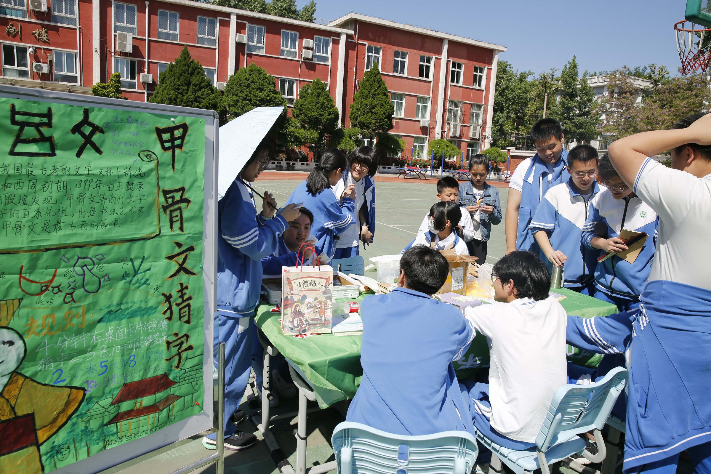 在互动活动区,共设置猜灯谜、投壶、甲骨文猜字、语文古诗接龙、画扇面、画石膏、红楼梦中人、飞花令、谁是卧底、你比划我猜、象棋比赛、书评影评、珠联玉缀展芳华、幸运抽签、听歌识曲等十余项互动性游戏。每一个游戏项目的摊位前都排起了长队,大家认真阅读游戏规则,积极投身游戏中。现场欢声笑语此起彼伏,师生们享受着这难得的欢乐时光。四月底的校园,青春与古典相遇,雅趣伴歌声齐飞!