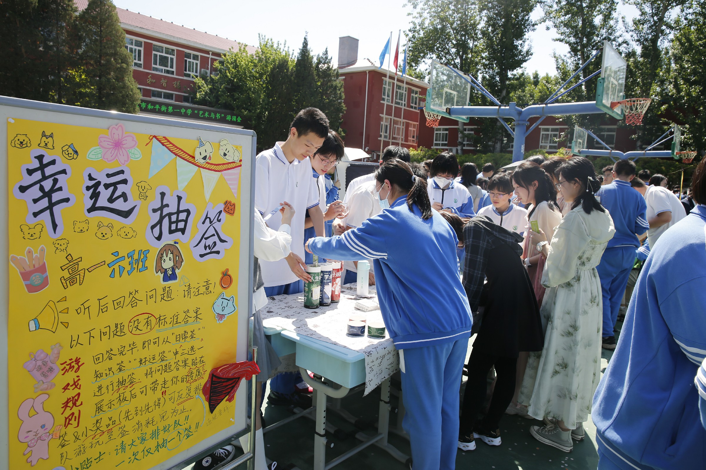 “此刻的我们,仿佛站在时光的交汇点上,既能感受到传统文化的深沉底蕴,又能见证现代艺术的新潮流......”在主持人意味深长的话语中,游园会拉开了帷幕。“自由象征”乐队首先带来他们的新曲目《一意孤行》,高一五班的马高苒同学献上了京剧《神女劈观》……游园会的艺术表演精彩纷呈,但互动性游戏活动更加令同学们向往。