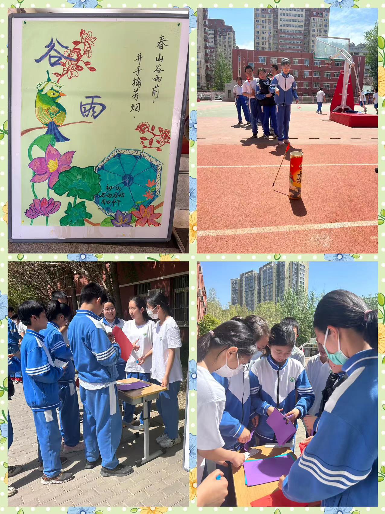 雨生谷雨,生机盎然。4月18日,时值谷雨之际,和平街初中校区初一3班主办了妙趣横生的校园午间特色活动,组织同学们通过背诵春天的古诗词、剪纸、投壶等传统游戏,体验谷雨时节的独特魅力。同学们积极参与、热情游玩,度过了寓教于乐的午间时光。