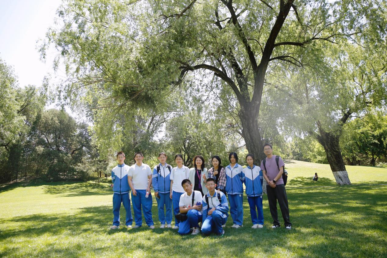 在参观清华学堂、图书馆、北院、水木清华等途中,杨艳校长与清华大学博士生董玉雪、研究生仇梦真、王啸给同学们讲解清华的历史、清华大先生们的故事。杨校长讲到“清华的美体现在很多方面,最美之处莫过于她的师生将清华的校训——自强不息 厚德载物内化到日常的一言一行中,成为了清华人的精神长相。”同学们感受到了学堂路上学生自行车流匆匆奔学的紧迫感,图书馆里全神贯注学习的庄严感以及课堂上哲思敏锐的深刻性。同学们走着走着来到了荷塘,虽然此时正值晌午,没有朱自清的“月色”,但朱先生的塑像和“水木清华”的牌匾还有荷塘的美景让同学们流连忘返。大家在此合影,祝愿同学们学有所成,圆梦理想!