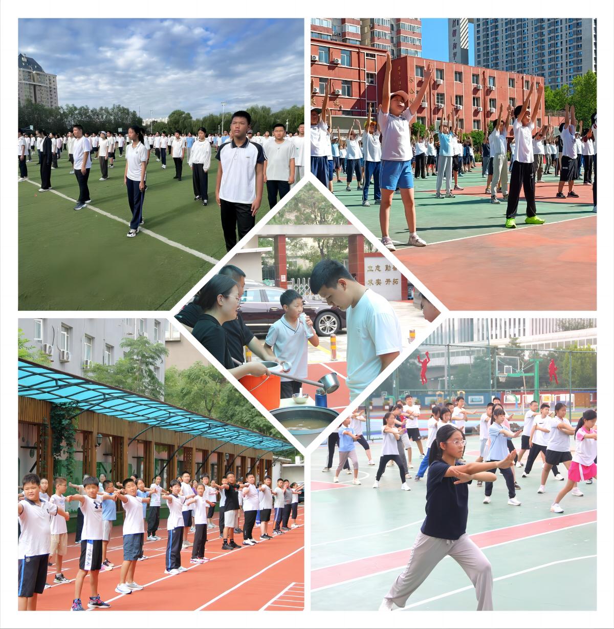上午的队列训练和武术操学习是入境教育的重要环节。八月的骄阳下,主训老师认真负责,严格要求;初一新生听从指挥,刻苦训练;学长志愿者无私奉献,示范引领;班主任团队全程陪同,关注学生;学校特意准备绿豆汤,帮助学生消暑解乏。处处是温情,处处是风景。