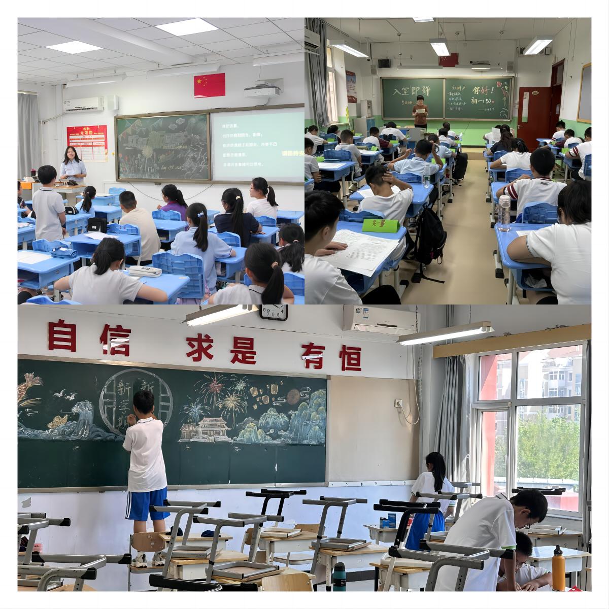 班主任带领同学们开展班级文化建设活动,讨论学习共同体,构建班级共同体。每一天例行的年级总结、班级总结,表扬亮点,让新同伴逐渐熟悉起来,新集体慢慢凝聚起来。
