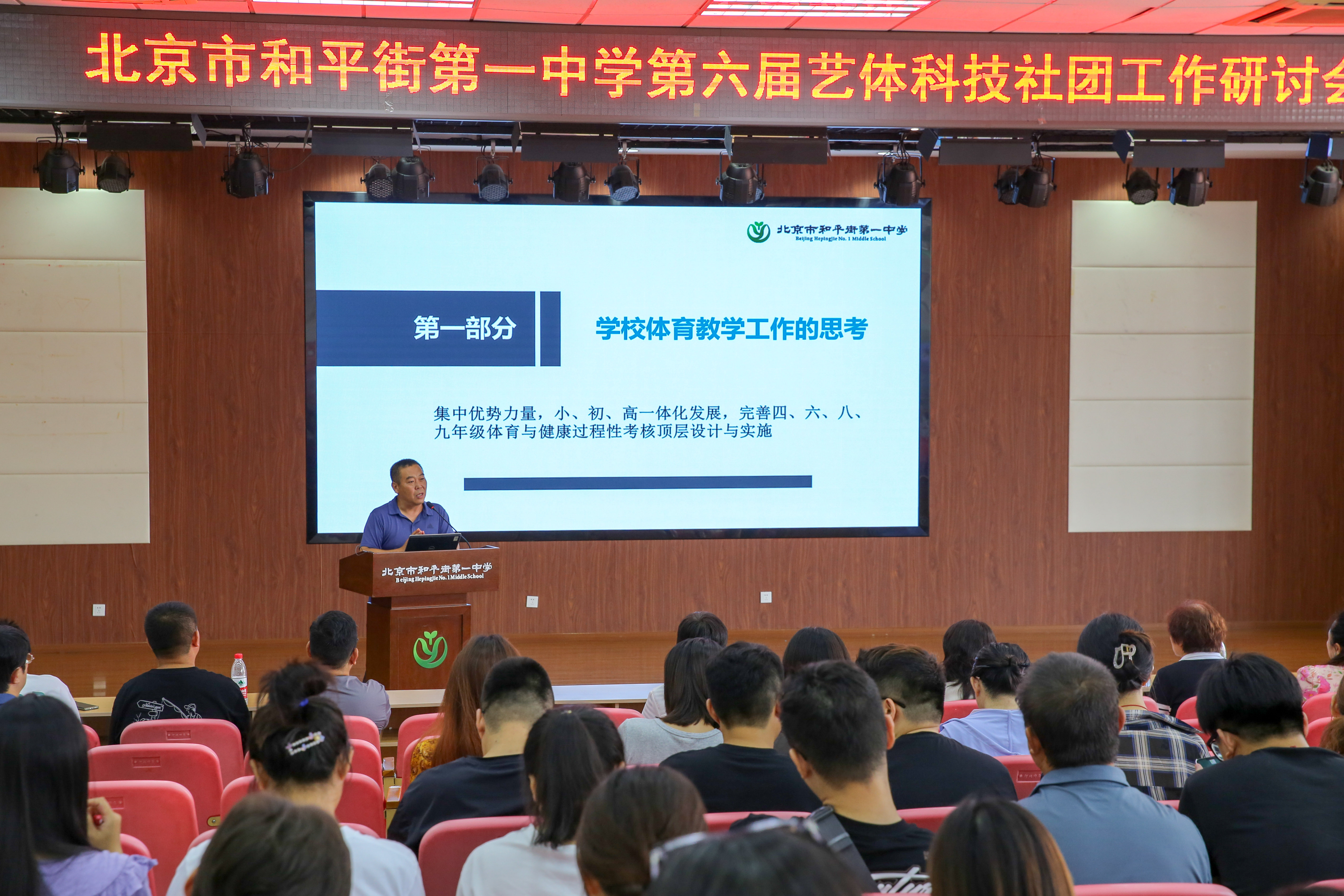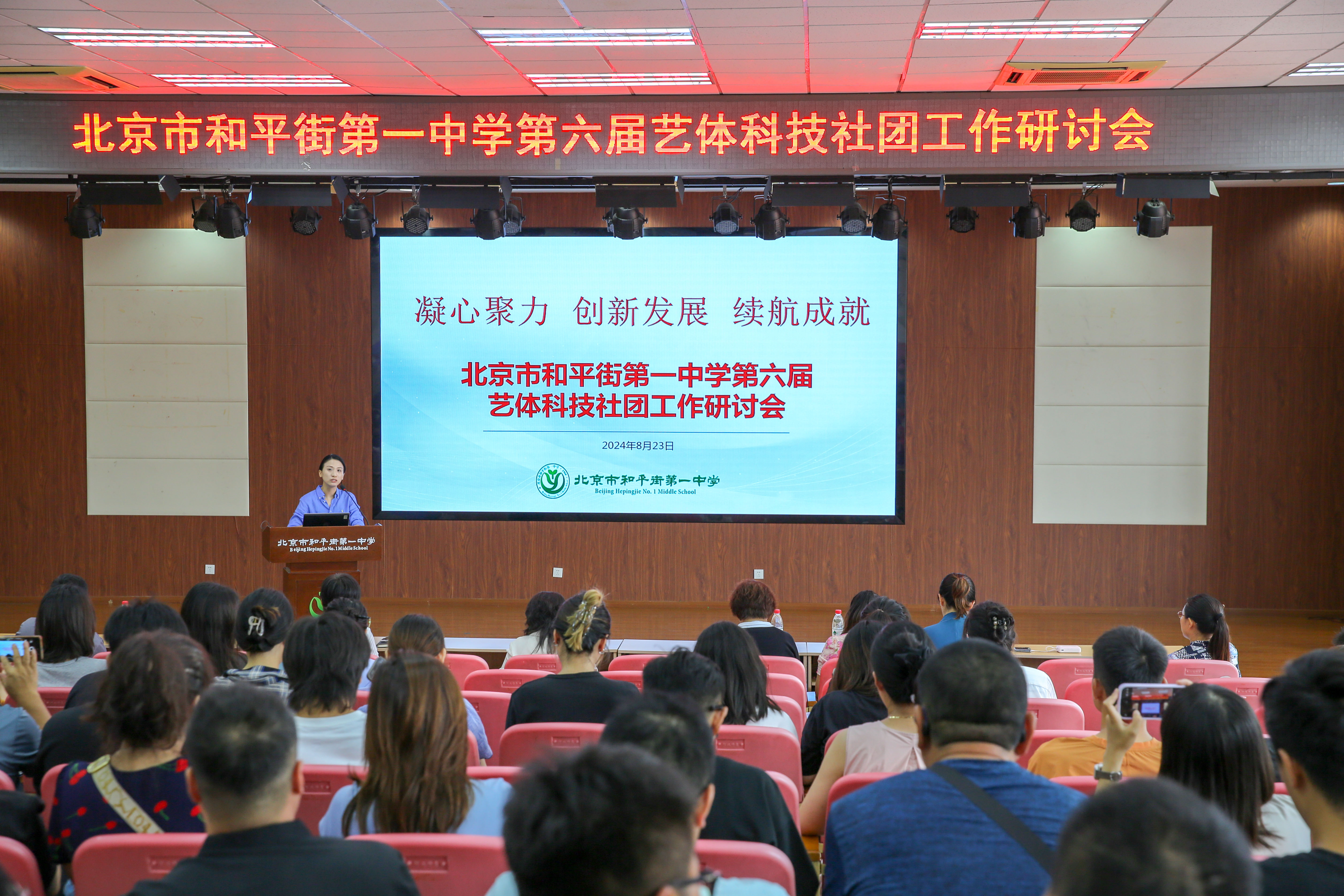 为了贯彻落实中共中央国务院《关于弘扬教育家精神加强新时代高素质专业化教师队伍建设的意见》《关于加强中小学地方课程和校本课程建设与管理的意见》《全面实施学校美育浸润行动的通知》等文件要求,全面推进五育并举,深化集团艺体科技社团高质量一体化建设,加强教师之间的交流与合作。2024年8月23日,北京市和平街第一中学教育集团召开第六届艺体科技社团工作研讨会。来自小初高三个学段六个校区的相关干部及艺体科技教师近百余人参加了此次活动。