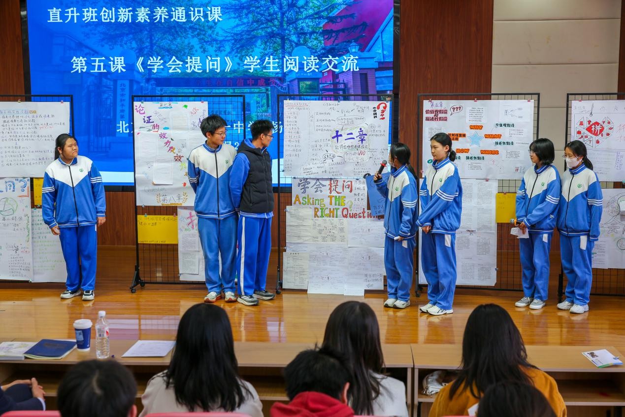 课堂观摩交流环节,清华大学师生观摩了杨艳校长教授的创新素养通识课,学校直升班学生围绕《学会提问》展开阅读分享和讨论。清华大学师生认真听取同学们的分享,并给予专业的点评与指导,现场互动氛围热烈。阅读交流展现了同学们良好的思维能力和积极的学习态度,同学们对清华大学学长们展现出的高阶思维能力、高水平沟通能力和指导性建议表达了强烈的赞赏,并表示本次交流对自己的人生目标、思维品质提升带来极大的影响,将以学长们为榜样,树立高目标,认真学习,提升综合素养。