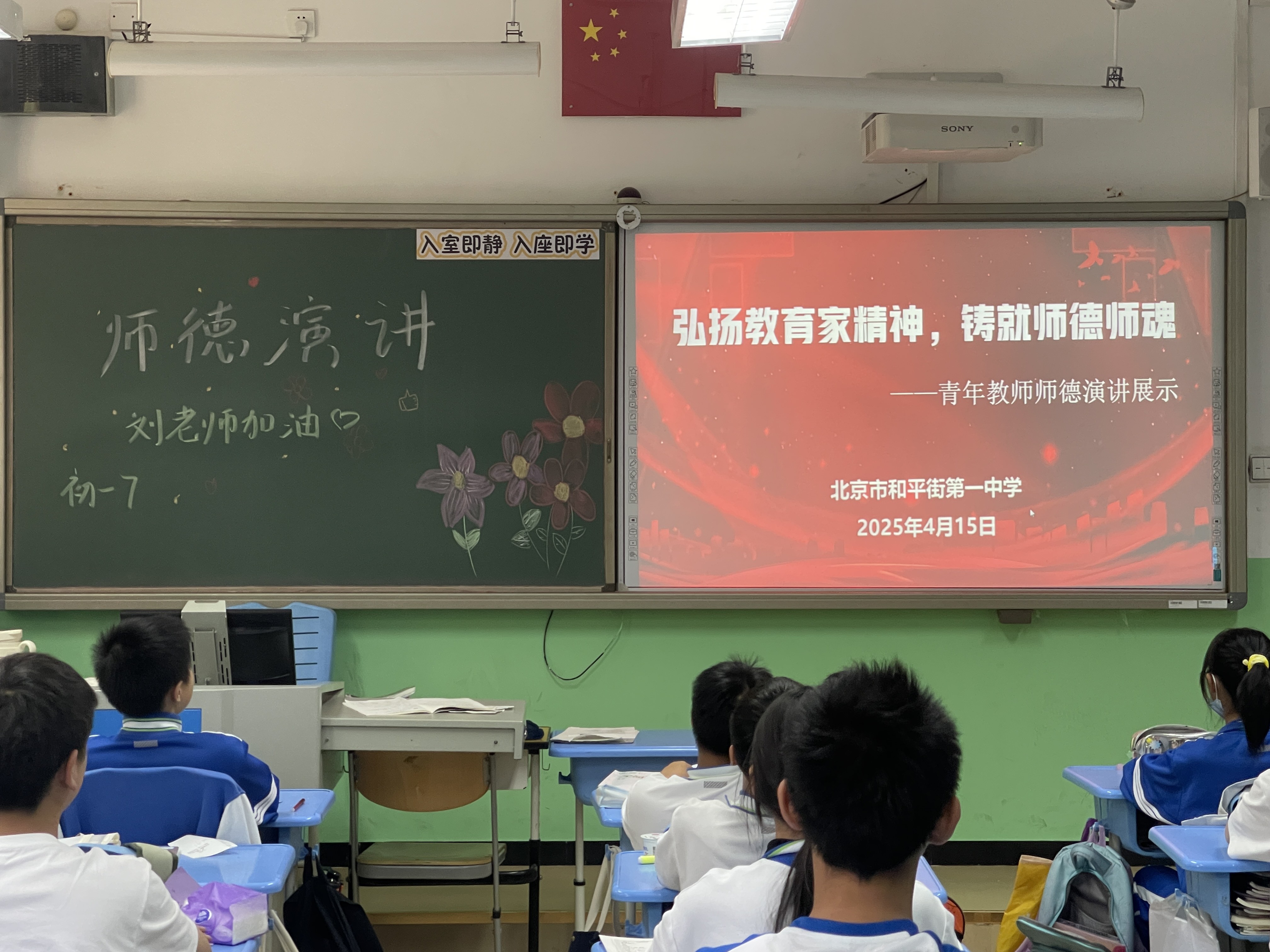 为深入贯彻党的教育方针,弘扬教育家精神,2025 年 4 月 15 日下午,北京市和平街第一中学举行了以“弘扬教育家精神 铸就师德师魂”为主题的青年教师师德演讲展示活动。全校六千余名师生通过现场参与和线上观看的方式,共同聆听了这场演讲,深刻感受了师德的力量与魅力。