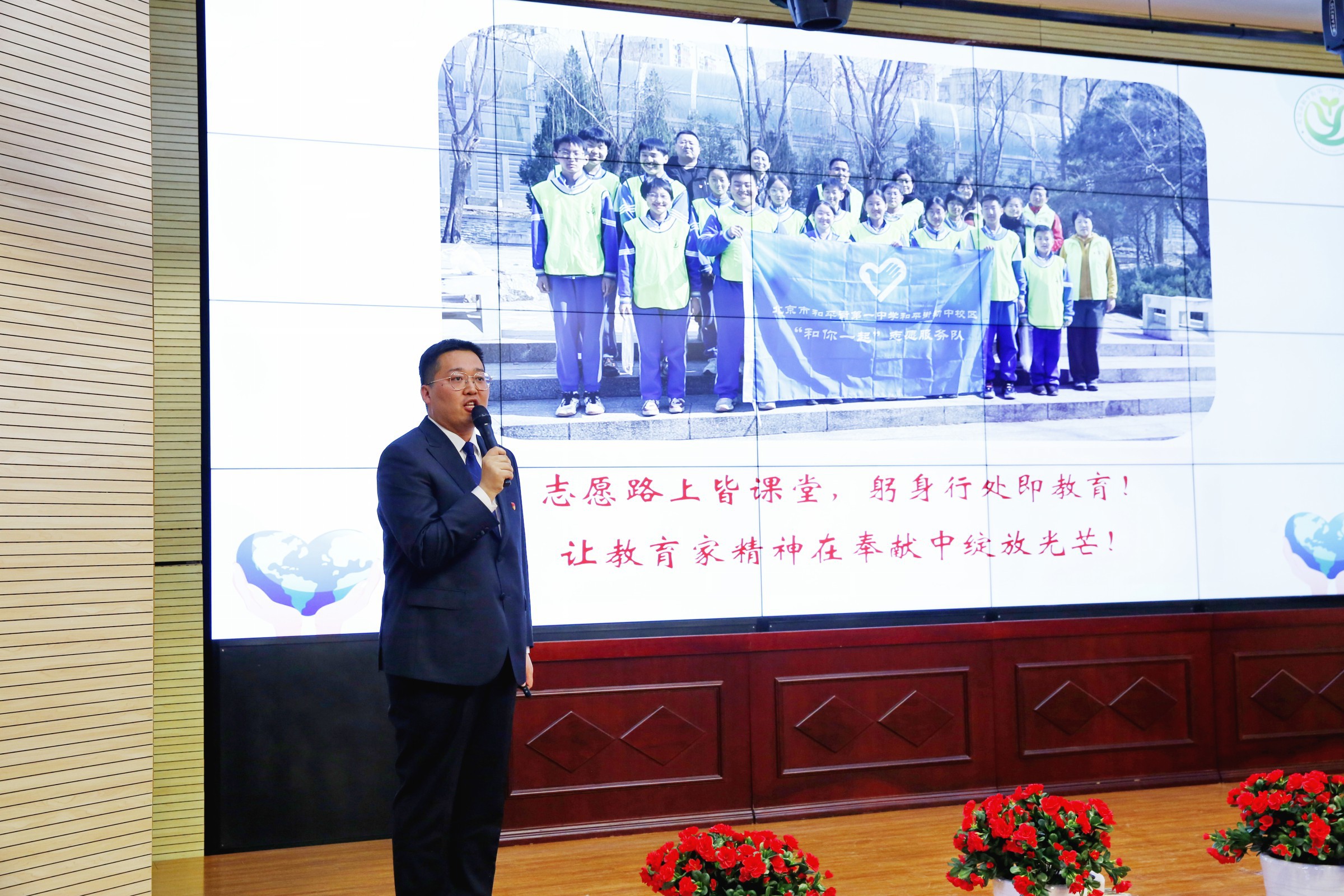 和平街初中校区的刘浩宇老师以《弘扬教育家精神,做和一志愿服务排头兵》为题,分享了自己的教育实践。他用实际行动诠释了教育家精神,带领学生在志愿服务的道路上发光发热,传递着爱与温暖。
