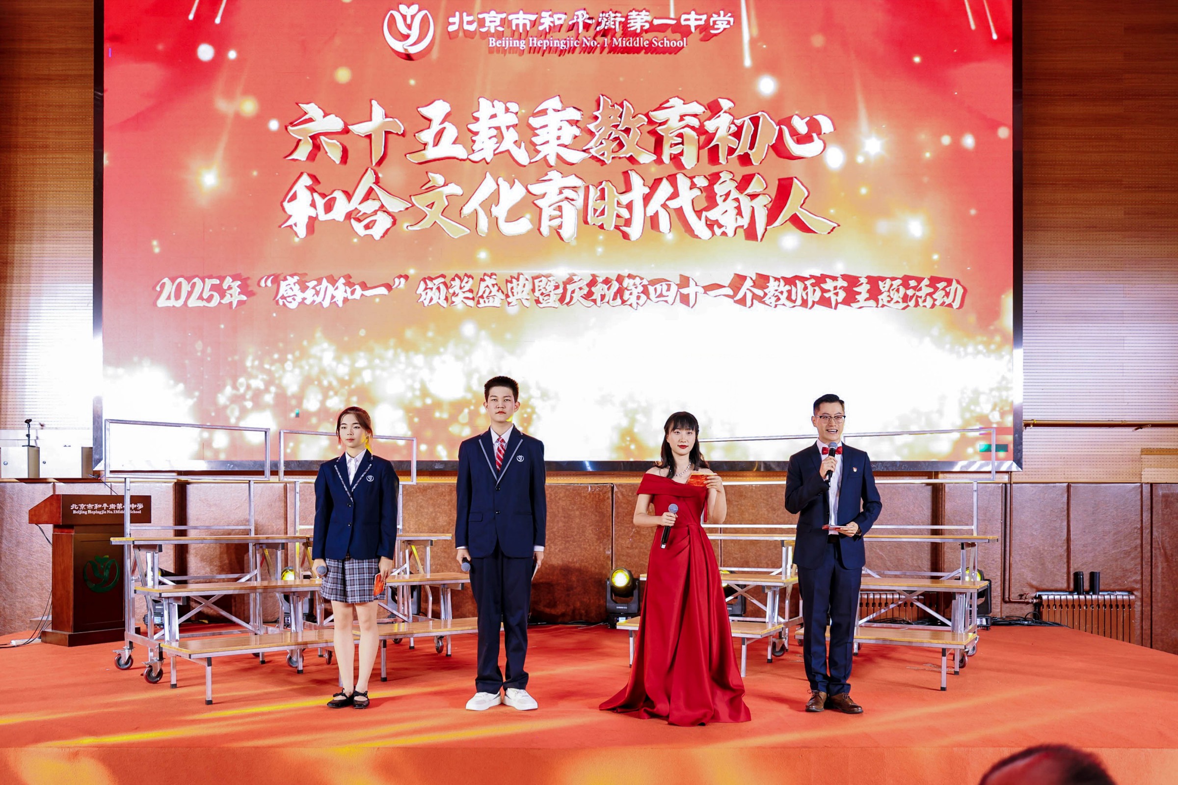 2025年9月12日下午,北京市和平街第一中学六校区全体教职工齐聚一堂,举行以“六十五载秉教育初心 和合文化育时代新人”为主题的“感动和一”颁奖盛典暨庆祝第41个教师节主题活动,共庆教师节,共话学校六十五载育人新征程。