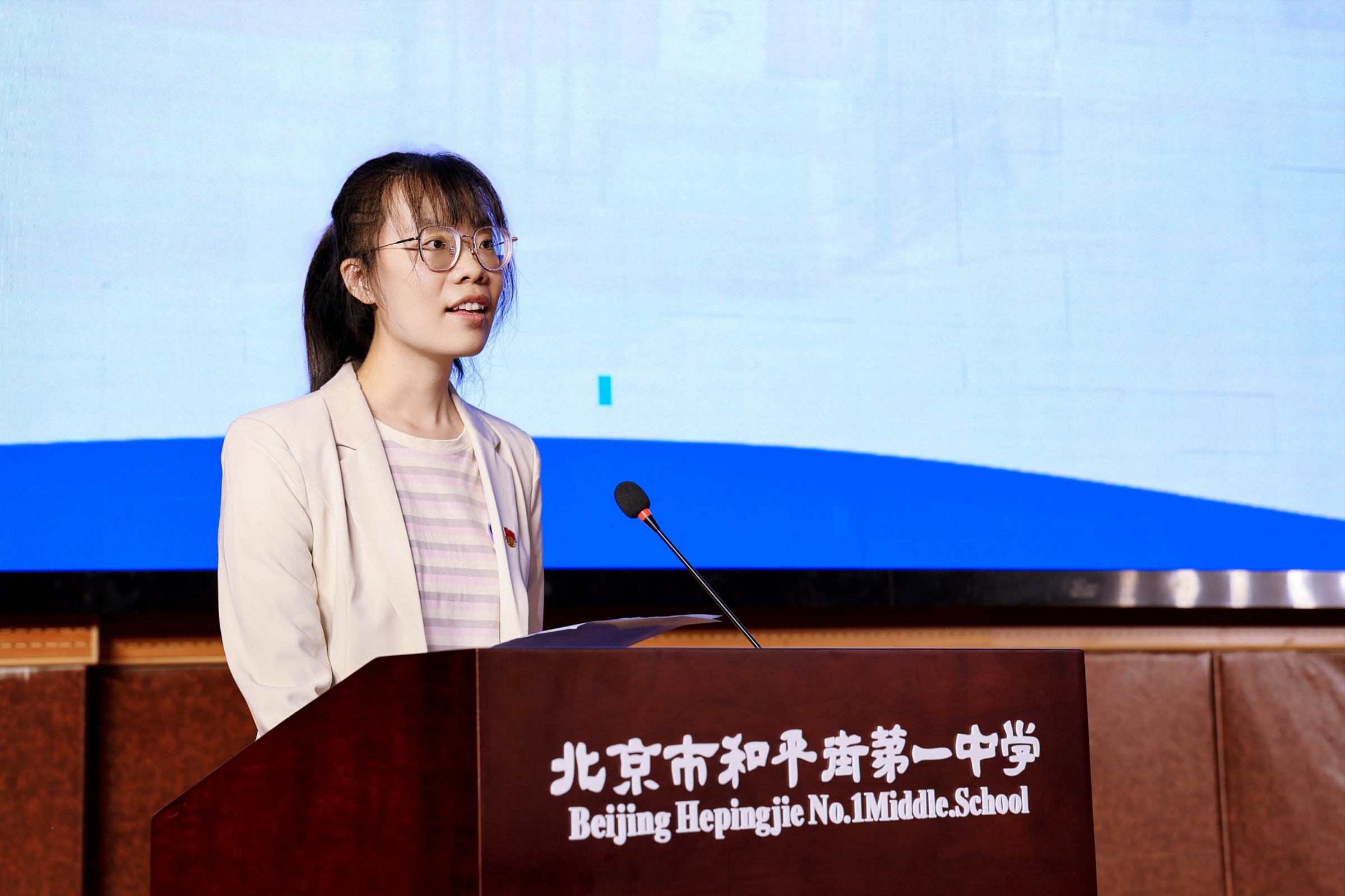 和平街高中校区梅晓璇老师、奥运村校区魏天慧老师作为校级优秀共产党员代表,朝来校区律佳美老师作为师德标兵代表,分别以“点滴耕耘:教育科研的日常实践”“恪守初心育希望,肩负使命向未来”“初心如磐,热爱致远”为主题,先后进行发言,分享专业探索实践,交流爱心育人感悟,展现了党员教师的先锋本色与师者风范。