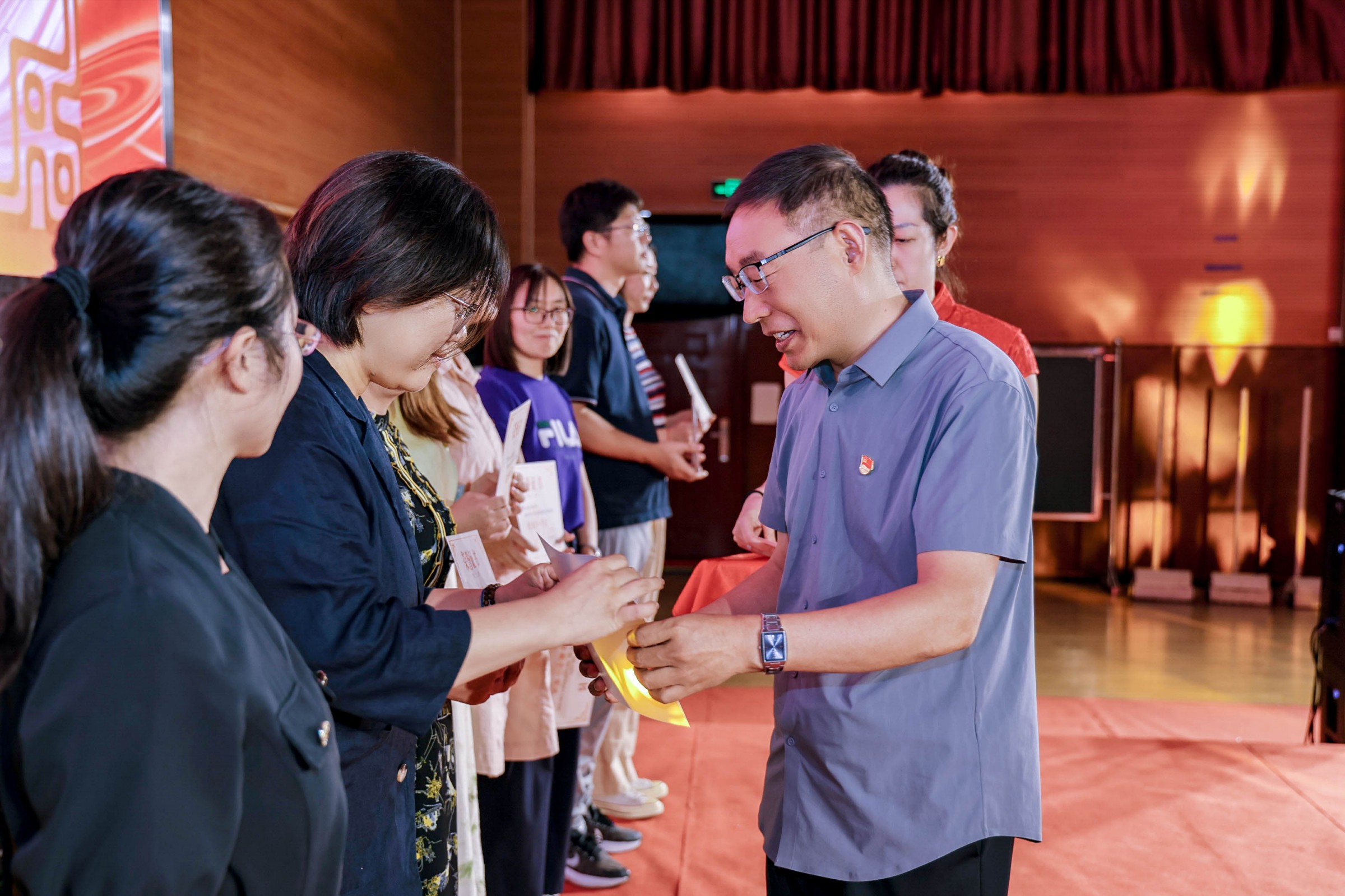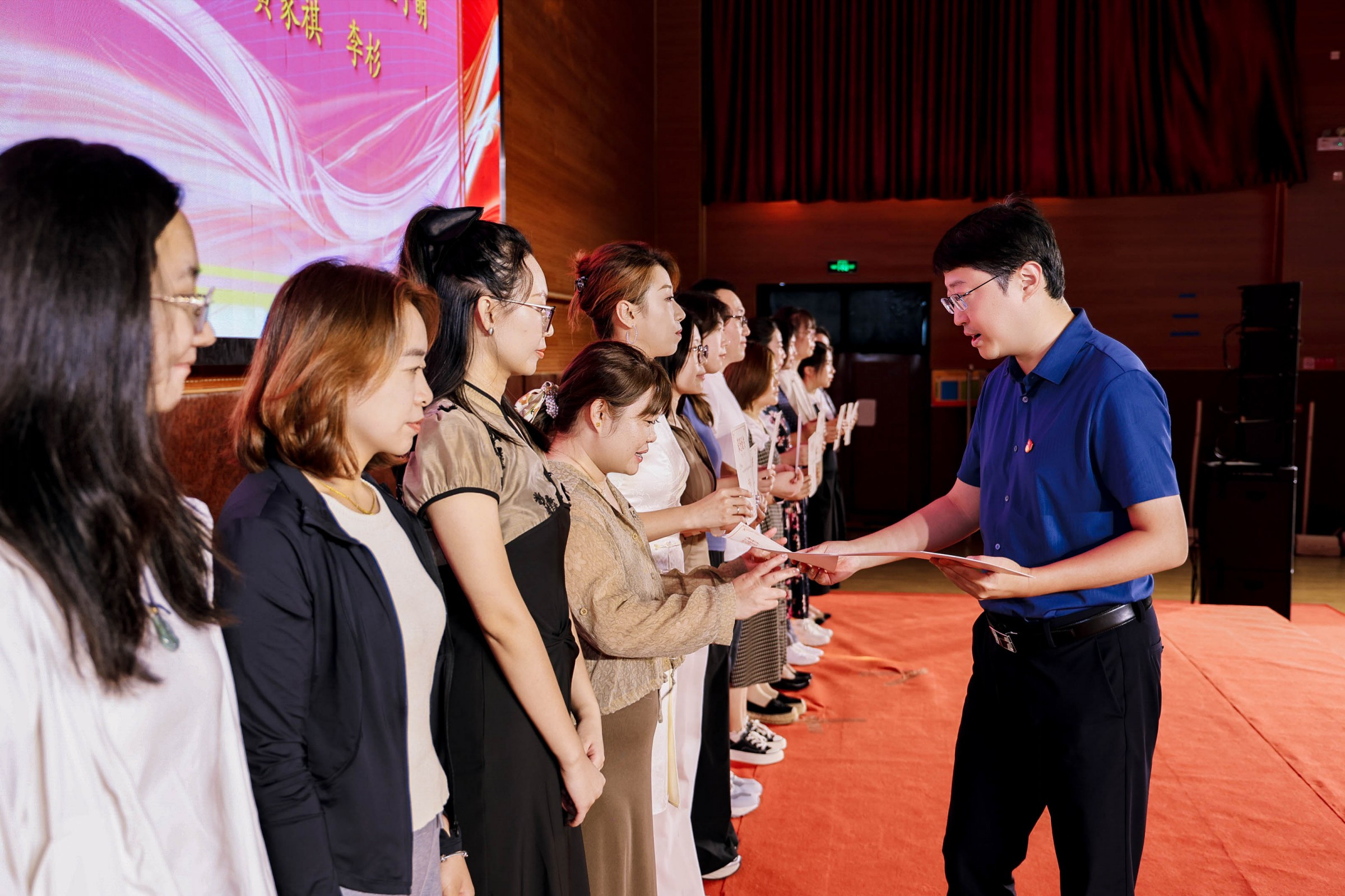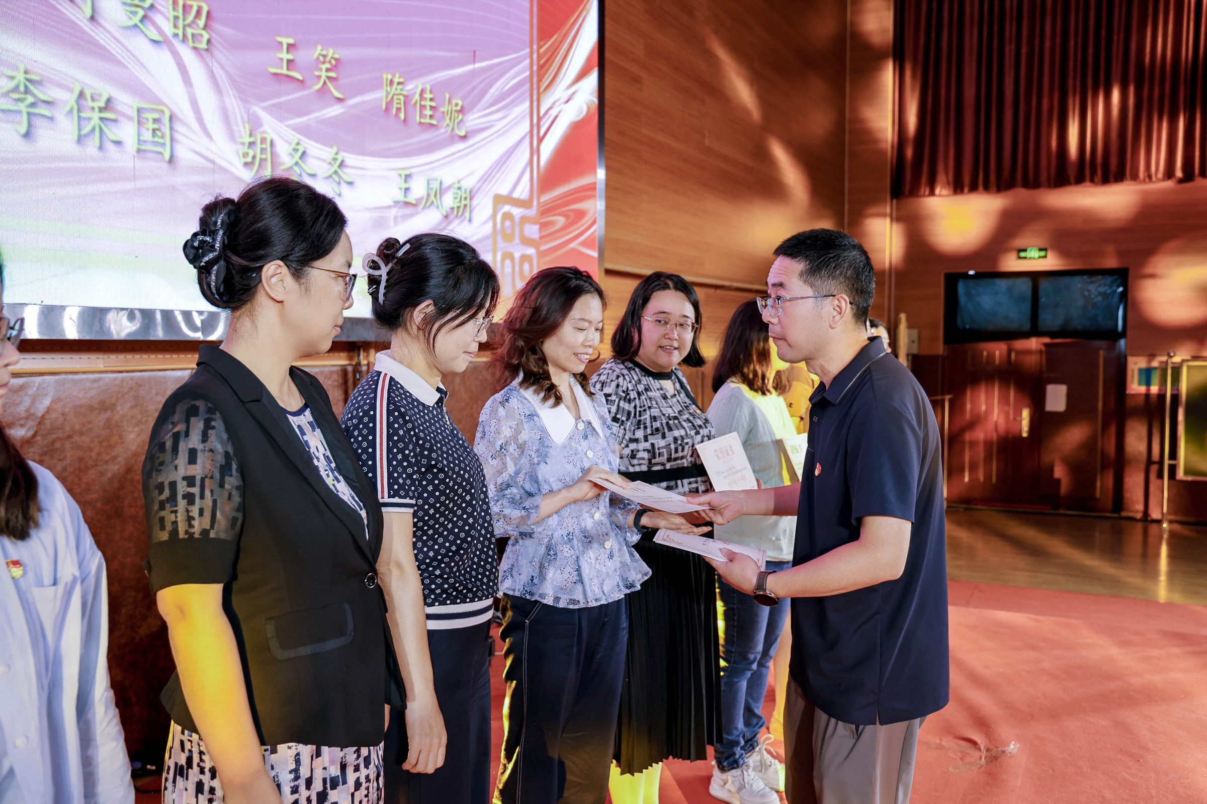 “党政篇”中,党委书记王松宣读颁奖词,致敬以忠诚守护教育沃土的教职工。校长杨艳,副校长曹成勇、周建萍为“优秀共产党员”“师德标兵”“服务之星”“奉献之星”获奖教师颁奖。