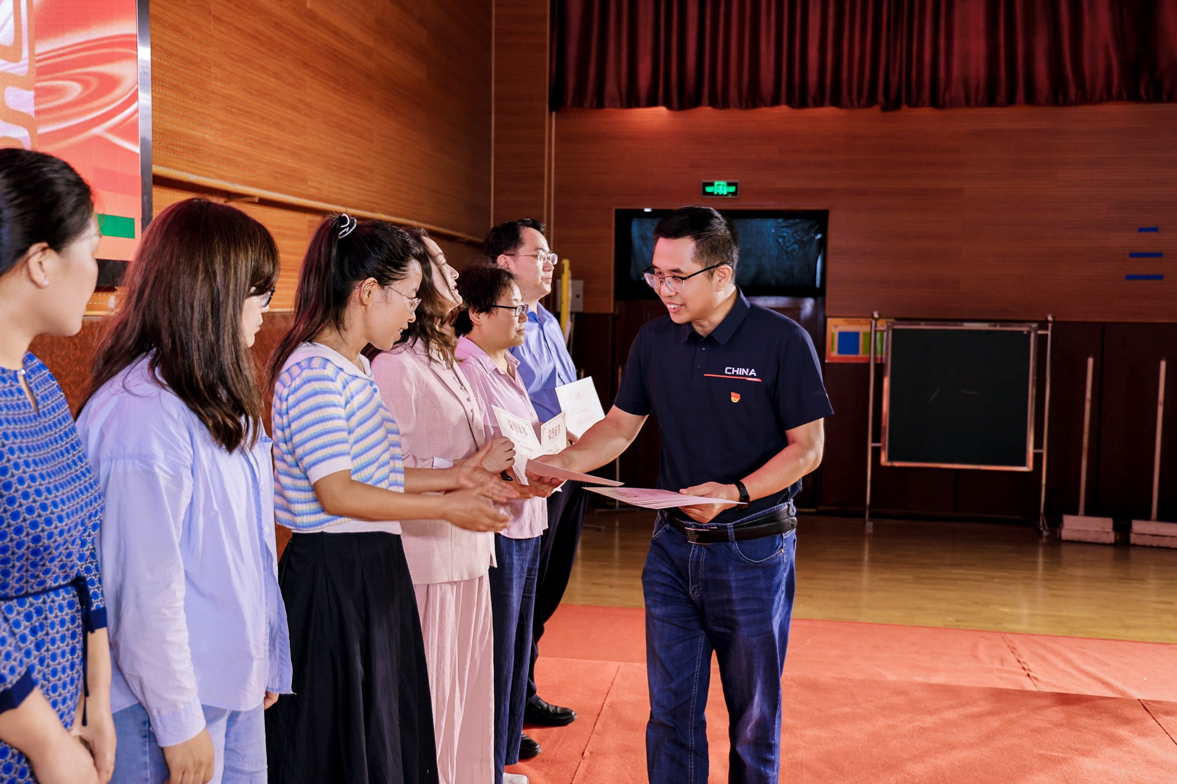 “德育篇”中,校长助理蒋韦在颁奖词中点赞教职工“以爱为桥,培育学子向上力量”的付出。副校长殷桂萍、杜鹏、邹小刚,校长助理王瑾为“第十九届班主任基本功大赛一等奖”“校级优秀班主任”“校级优秀年级组长”“艺体科技特色发展贡献奖”获奖教师颁奖。