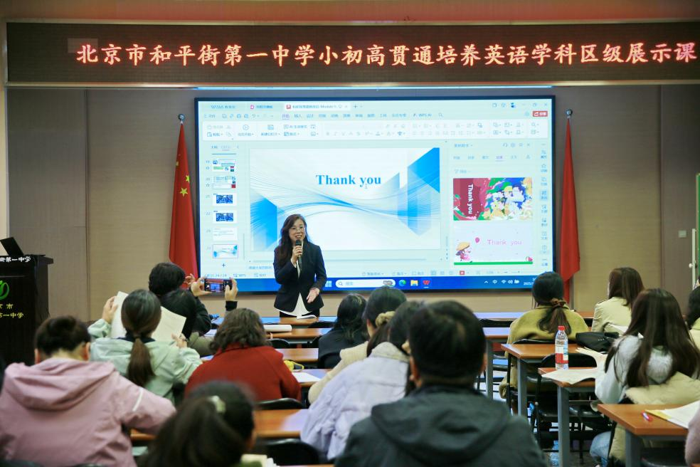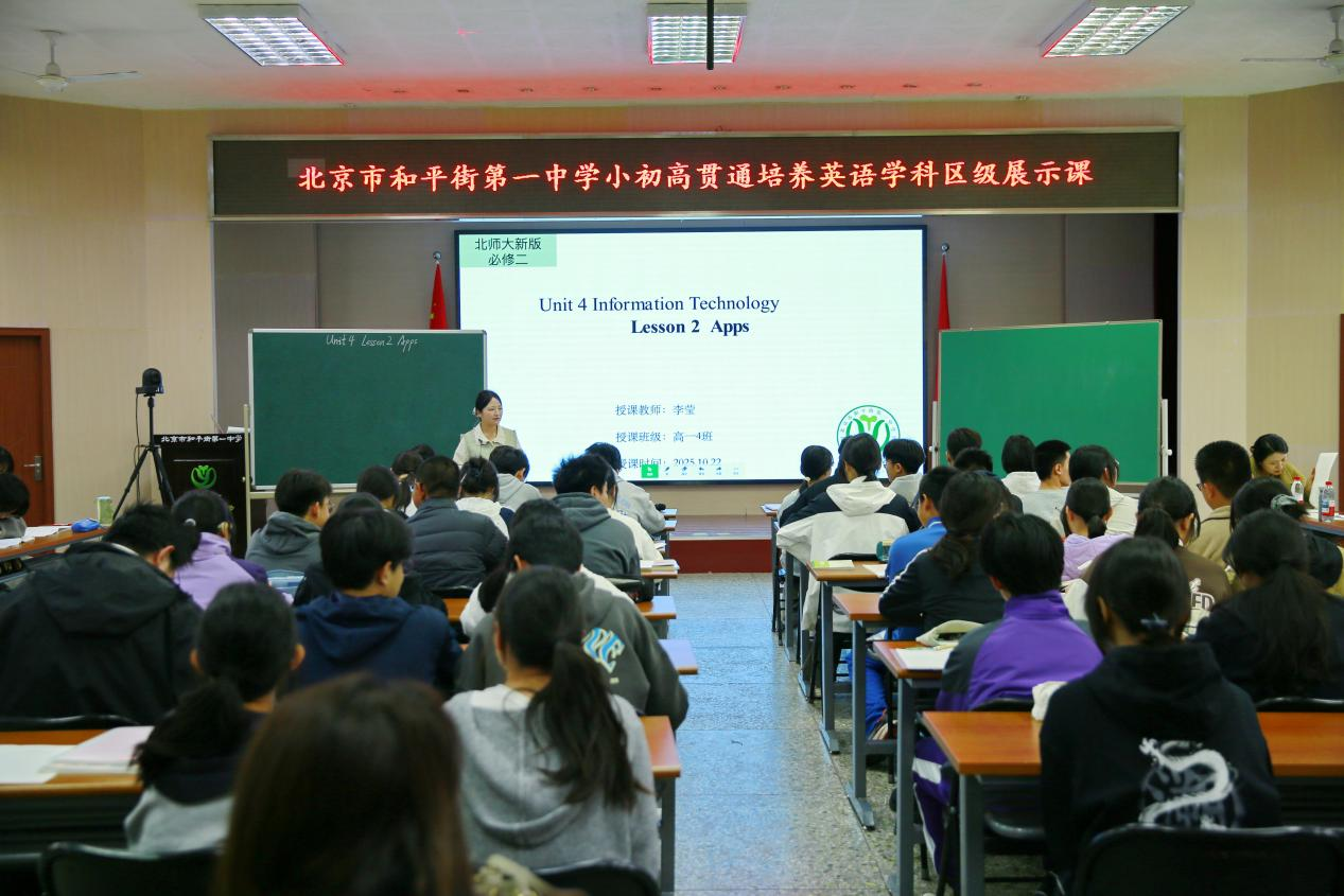 为深入探索小初高贯通培养的有效路径,2025年10月22日下午,北京市和平街第一中学教育集团举行了“小初高贯通培养英语学科区级展示课活动”。本次活动由和平街第一中学英语学科教研组长、特级教师李金花牵头组织,特邀朝阳区高一英语教研员李春芳老师、高二英语教研员冯娟老师莅临指导。集团内三校区英语教师同台展示,全区高一、高二英语教师及集团内中小学英语教师通过线上线下方式共同参与了此次教研盛会。