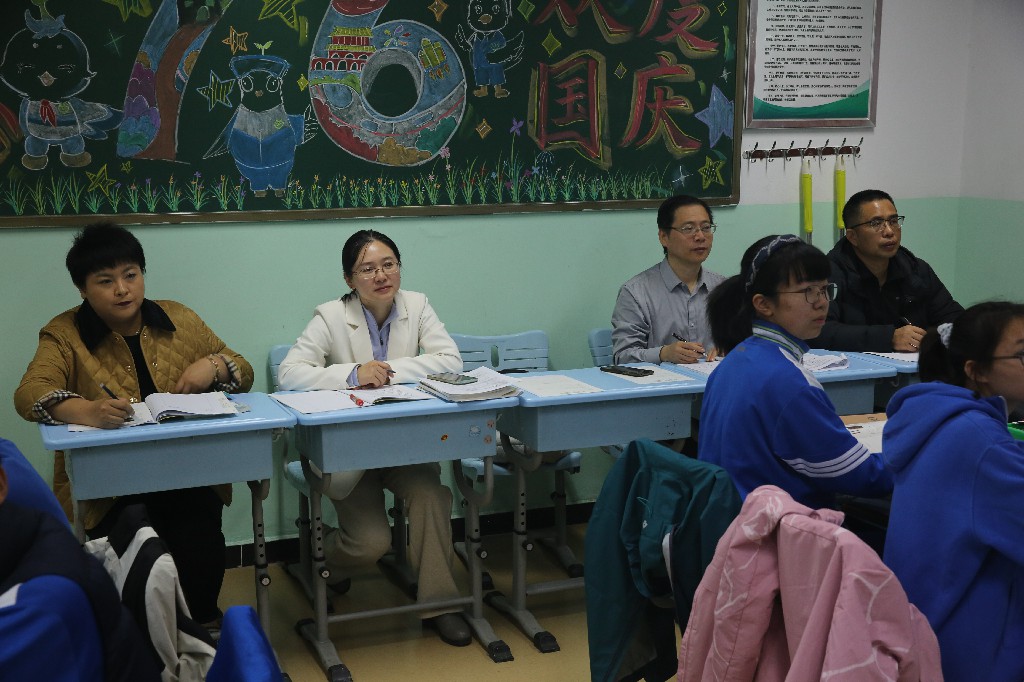 2025年10月29日,朝阳教科院初中教研部初三中考学科教研员一行莅临和平街一中和平街初中校区,深入初三年级课堂进行听课指导。学校校长杨艳、书记王松、教学副校长邓立、校区主管副校长邹小刚全程陪同参与,共同聚焦课堂教学实效,助力中考备考工作。