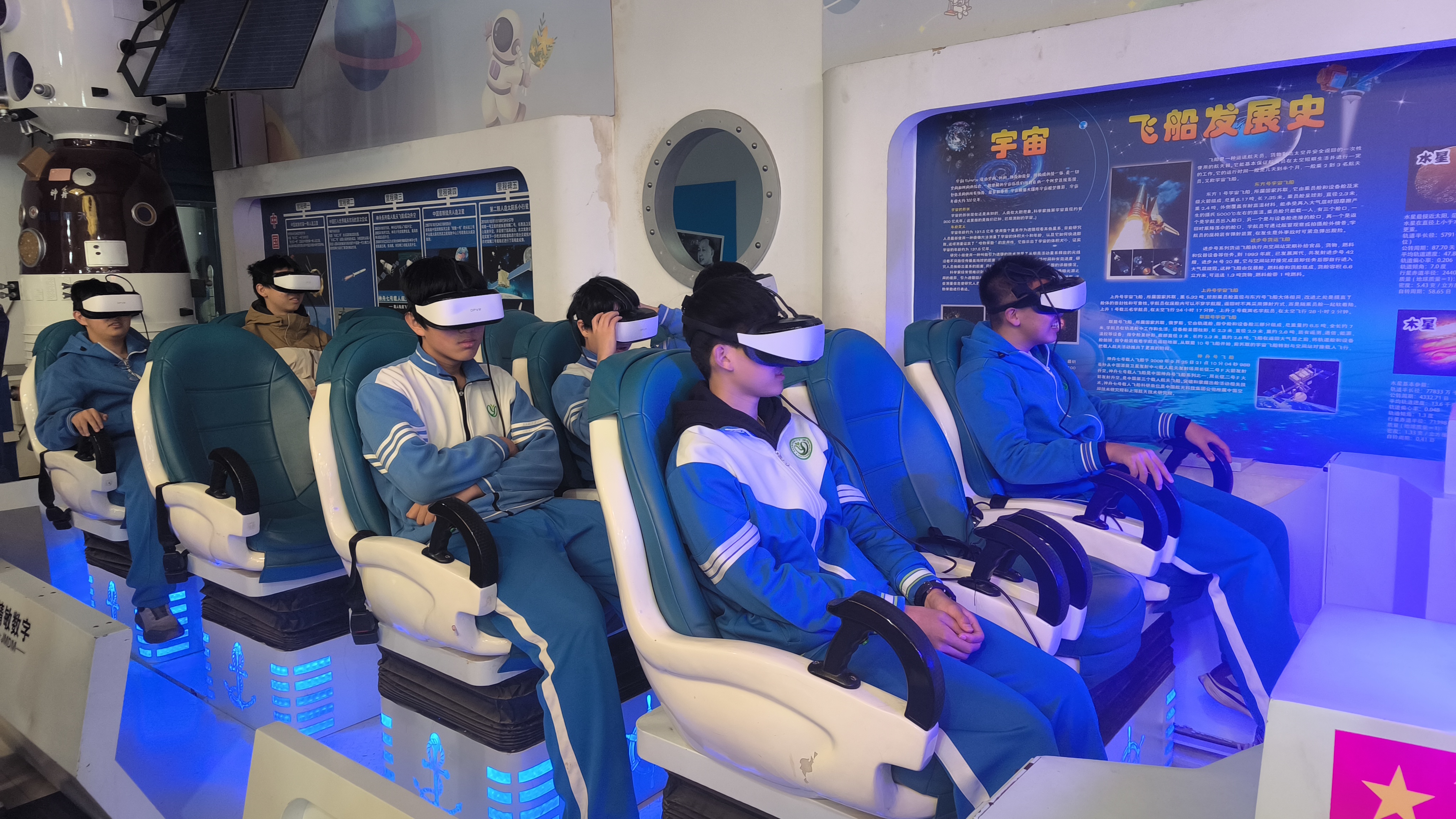 在科技体验环节,同学们沉浸于航天9DVR模拟舱之中,仿佛置身于深邃的太空,亲手操控飞船,感受失重与航行的真实体验;在水火箭制作现场,各小组协作调试水量与气压,见证反作用力推动箭体升空,牛顿定律在实践中鲜活展现;在人工智能与无人机课程中,同学们尝试编程与操控,感受科技服务生活的温度与力量。