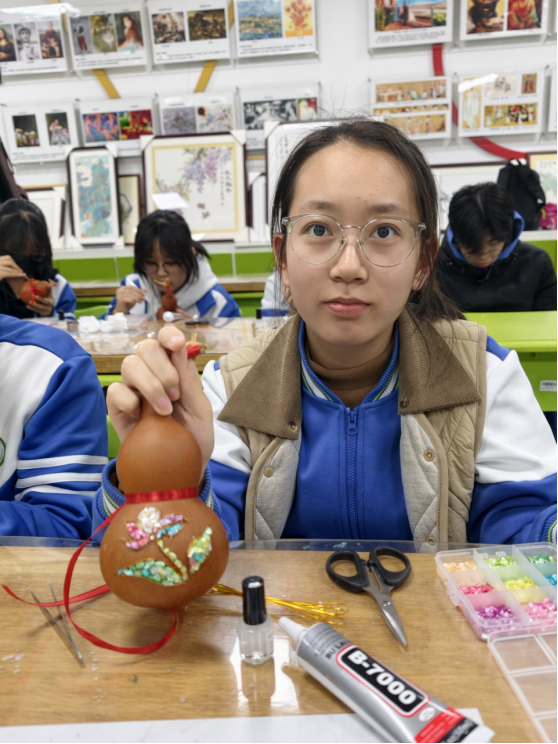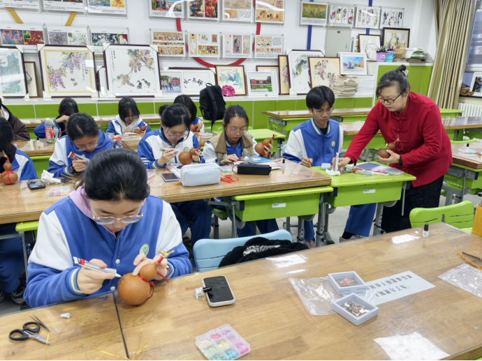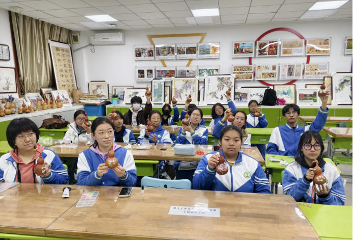 据悉,和平街一中始终重视中华优秀传统文化的校园落地实践,此前已相继开展糖画、木版画、绒花等多项非遗体验活动。此次螺钿与烫葫芦的跨界实践,是学校“非遗+社团+双师”育人模式的成功探索。未来,学校将继续邀请更多非遗大师进校园,与校内特色社团深度联动,解锁更多传统艺术创新玩法,让文化自信的种子在同学们心中生根发芽。