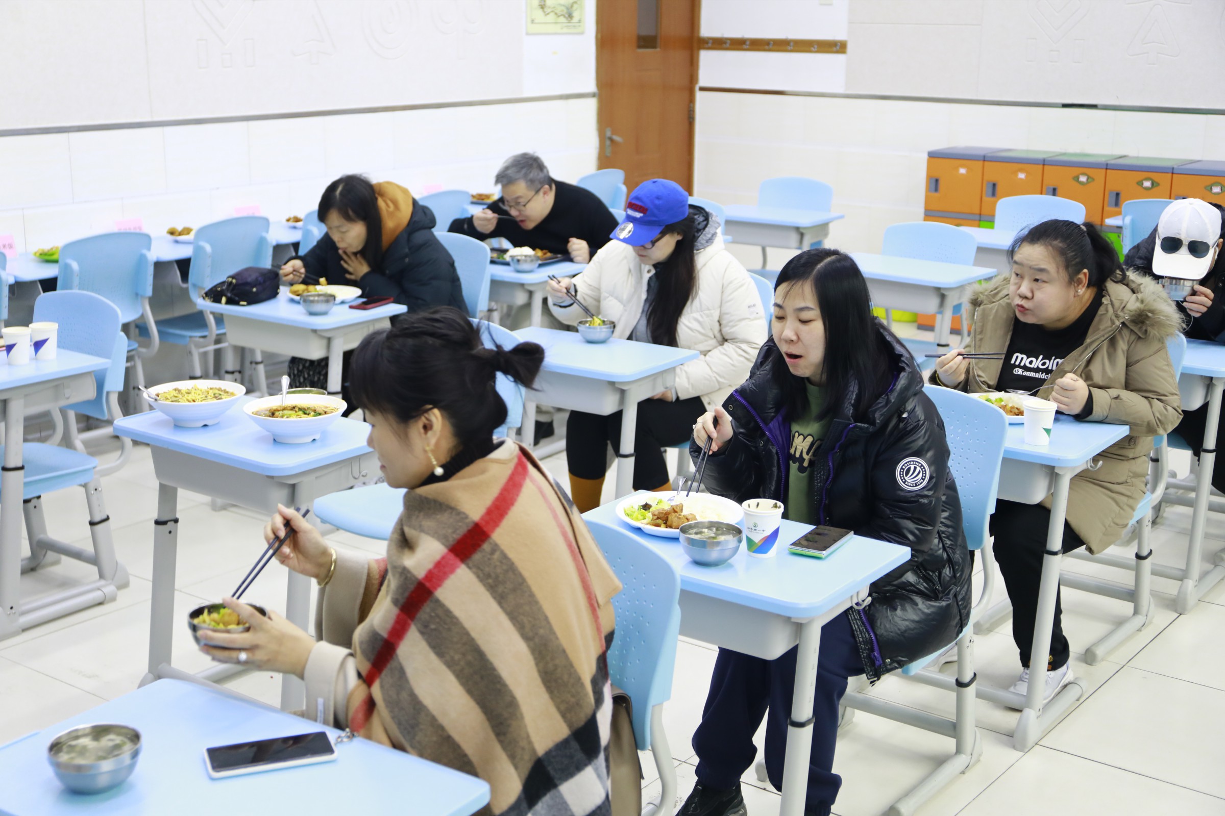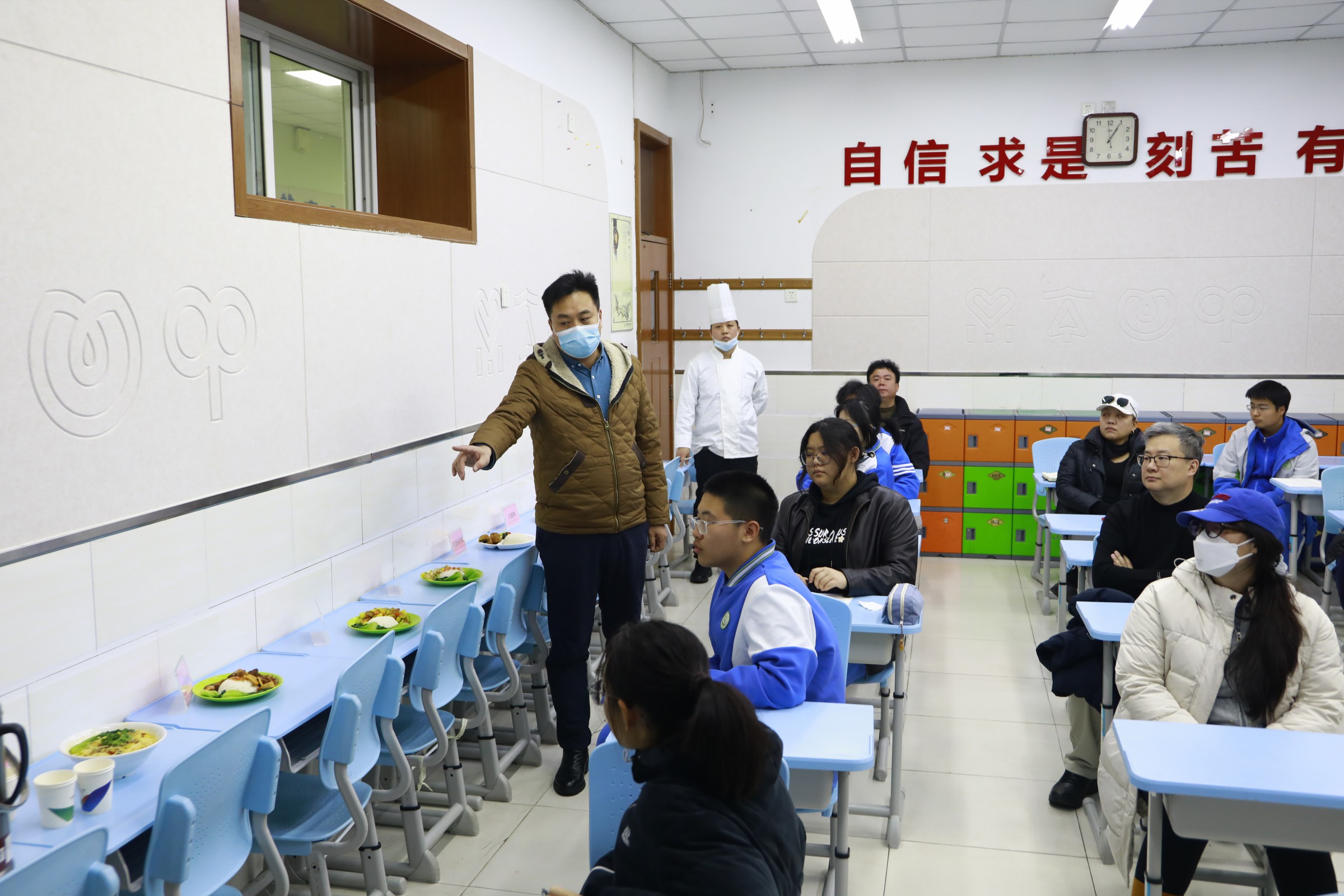 随后,家长代表与教师代表共同参与陪餐,品尝当日学生餐并填写评价表。在座谈会上,德育主任郝刚汇报了学校膳食委员会工作情况,总务主任白林汇报了学校膳食管理制度、食谱制定、食品安全管理及营养搭配等工作情况。代表们围绕食材新鲜度、菜品口味、特殊饮食需求等问题积极提问,学校领导与食堂负责人逐一回应,并认真记录意见建议。最后,校区主管副校长周建萍讲话,表示学校将不断优化学生餐饮服务,为学生提供更加健康、营养的餐食。