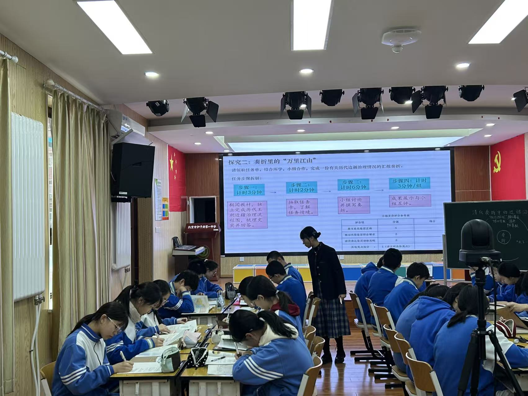 2025年12月26日,和平街初中校区历史教研组陈静宜老师完成区级公开课《清朝奏折中的边疆治理与民族关系》。此课系历史教研组“指向核心素养的教学实践系列”区级研究课,旨在探索复习阶段如何通过教学设计落实学科核心素养、提升课堂效率。