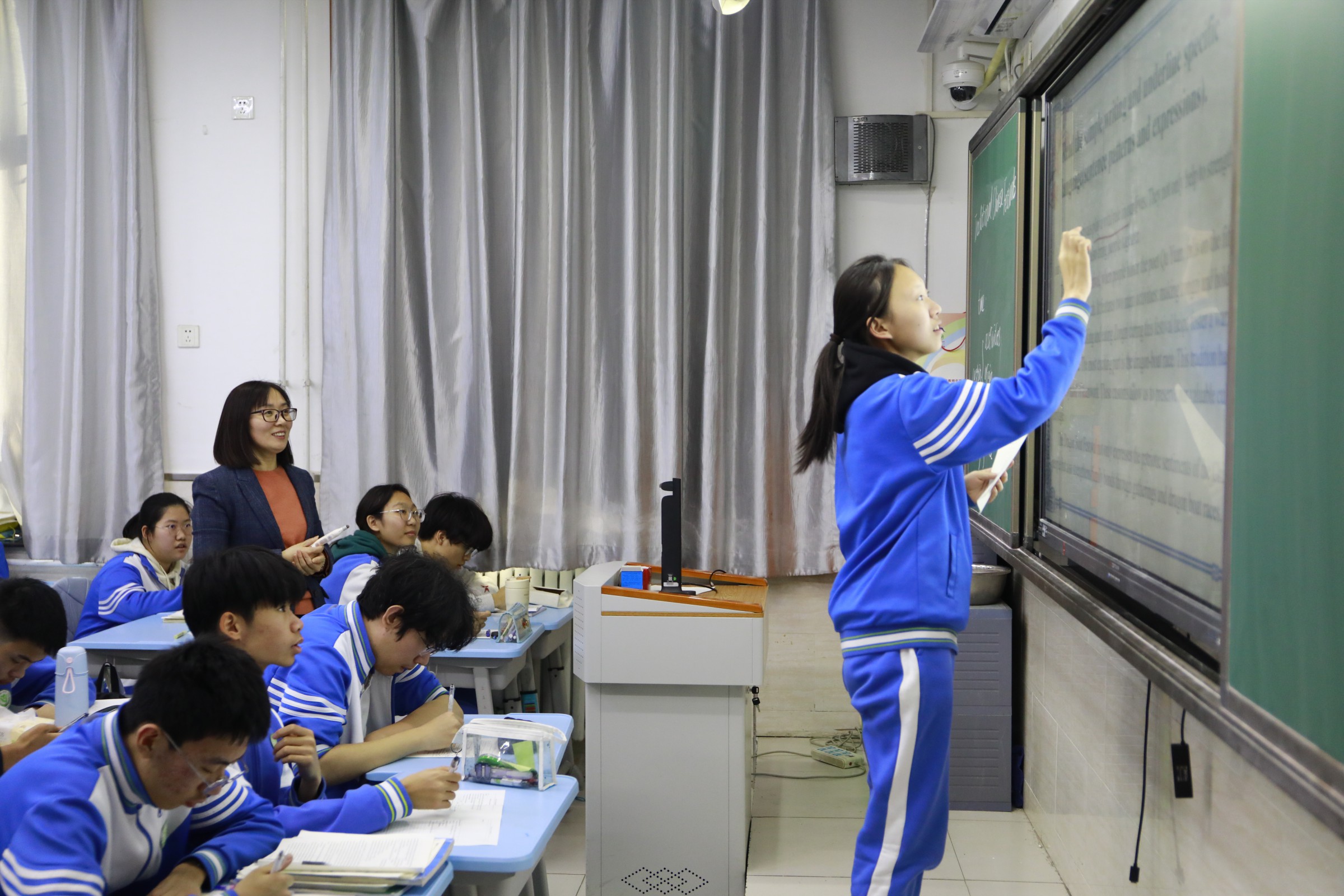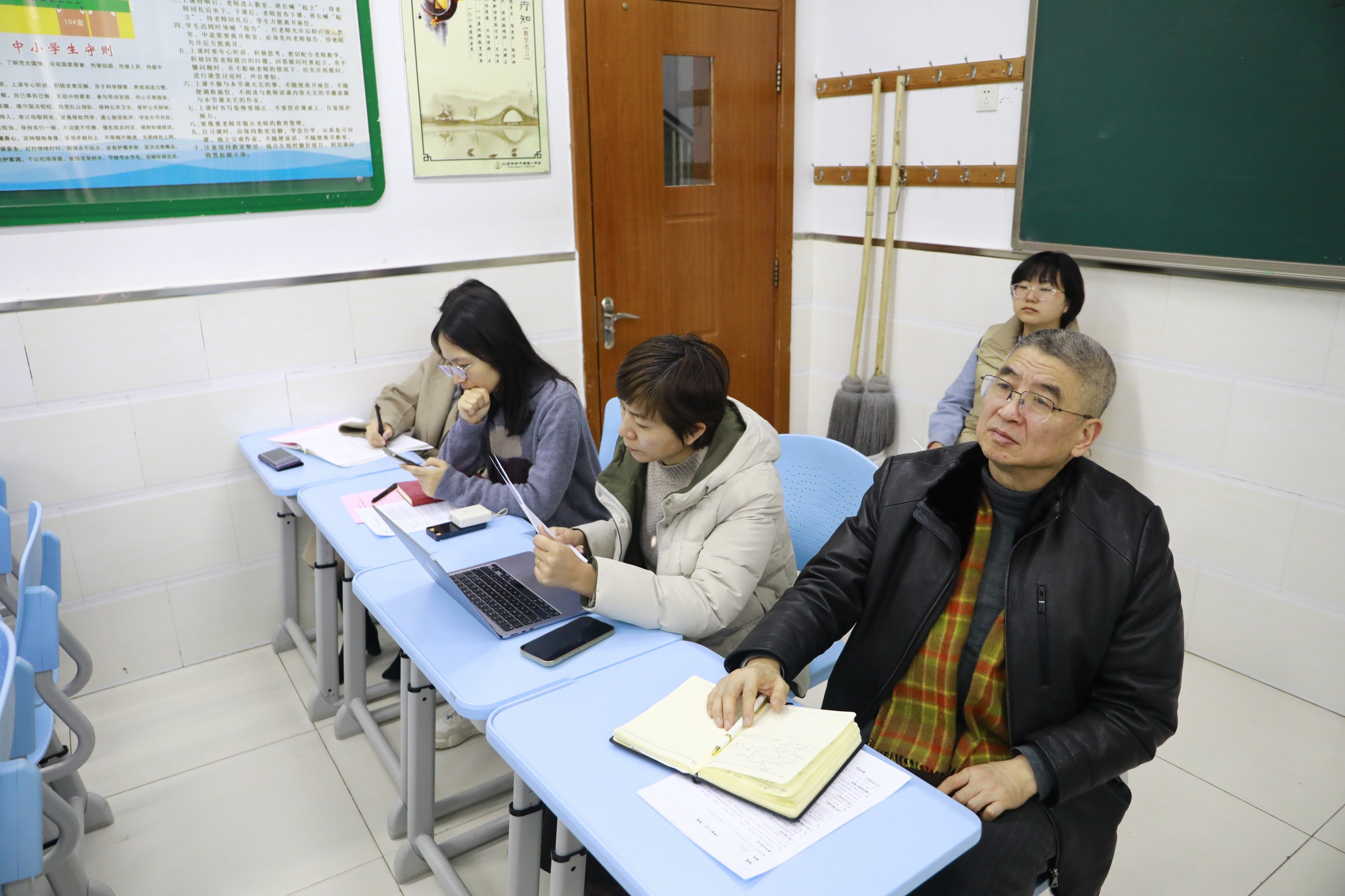 专家组深入语文、英语、地理、思想政治四个学科进行听课,对四个学科教研示范建设情况开展课堂评估。