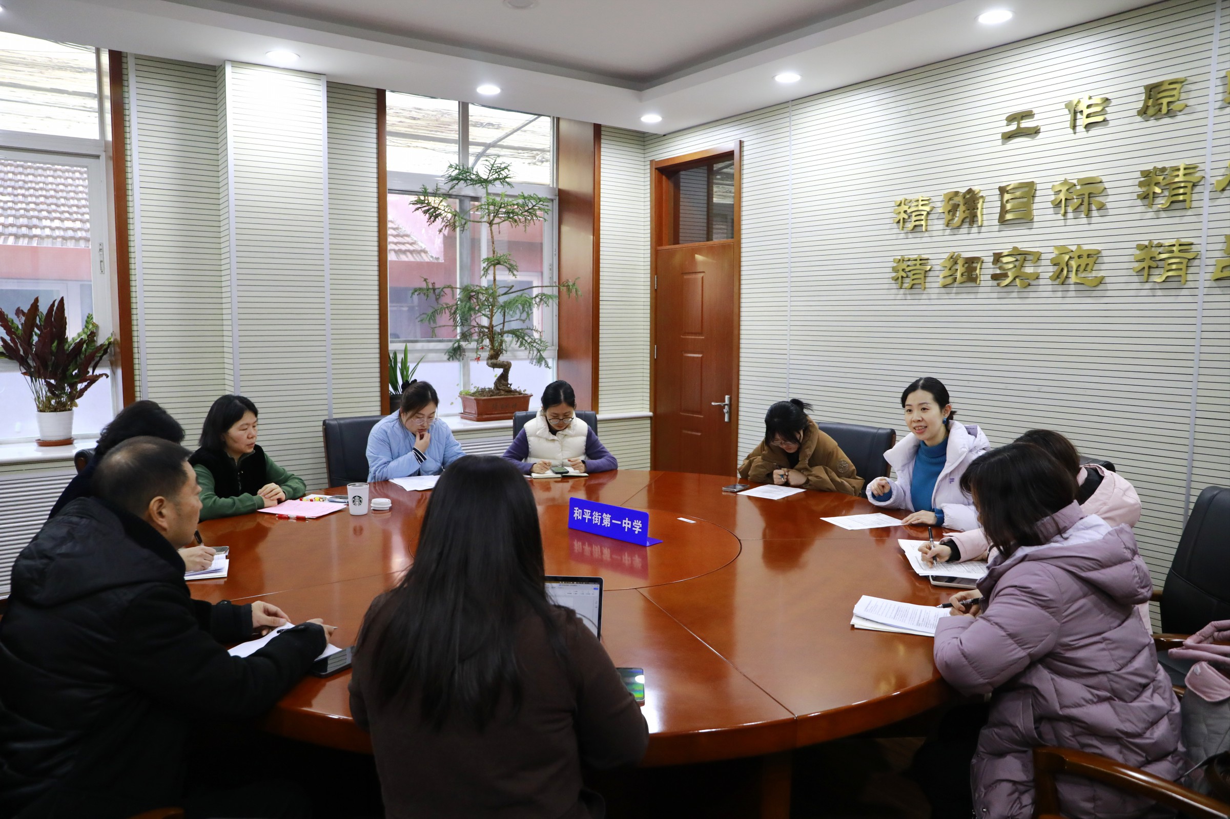 四个学科语文、英语、地理、思想政治教研组长王郁老师、李金花老师、马卫华老师、冯燕玲老师分别以《高中文言文进阶课程的实施路径研究》、《大单元视域下英语文化教学研究与示范基地建设》、《基于核心素养培养的地理学科育人基地校建设》、《价值引领 实践育人——小初高思课一体化建构与实施》为题,聚焦学科教研基地建设目标、任务、工作进展、效果等进行了系统汇报。